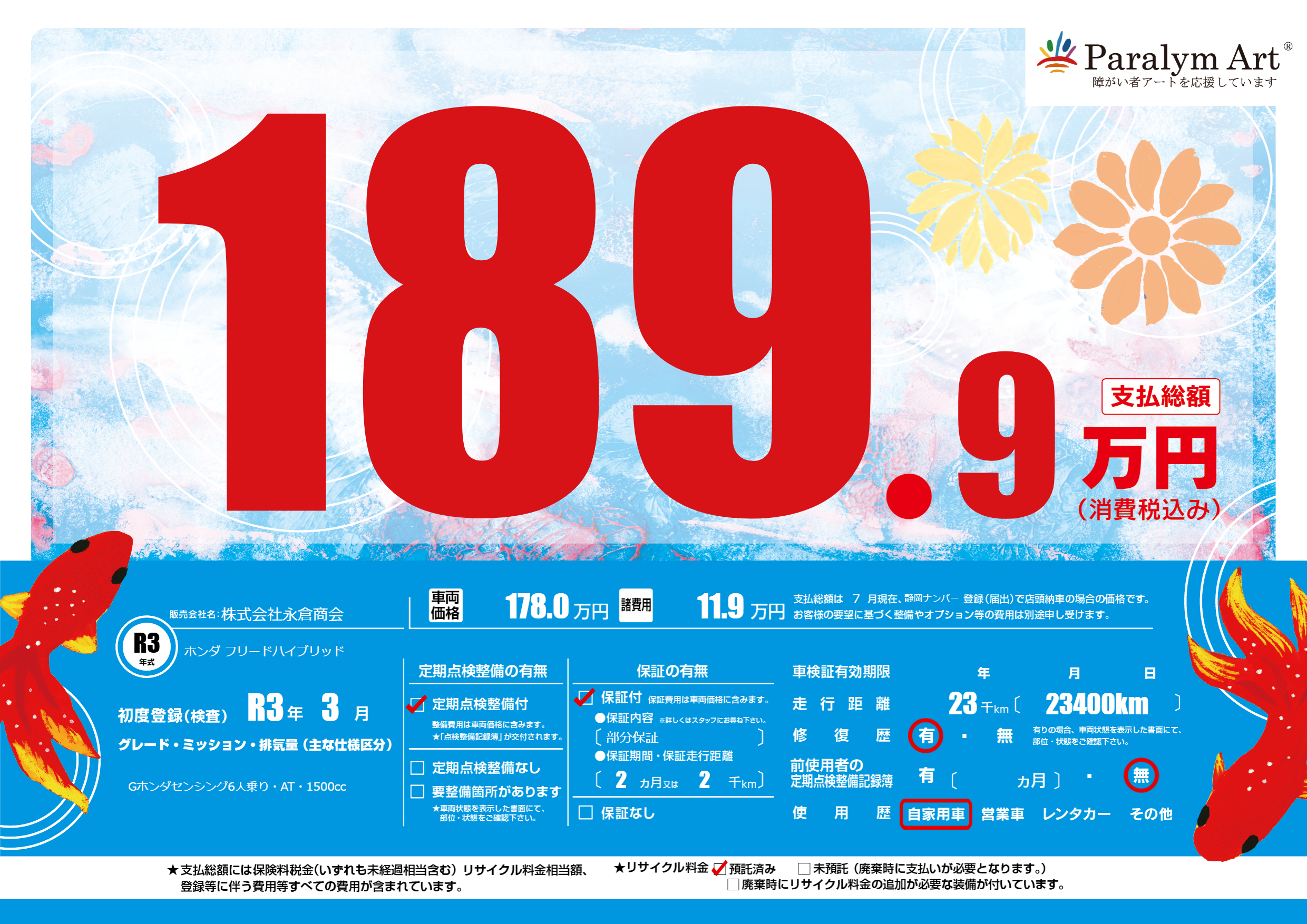 | 走行キロ | 2.3万km | 初年度登録 | R3年3月 |