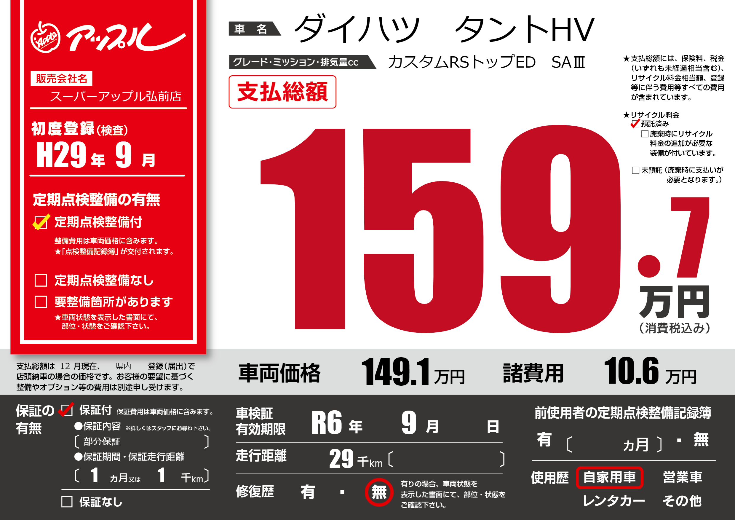 | 車検制限 | R6年 9月 - 日 | ||