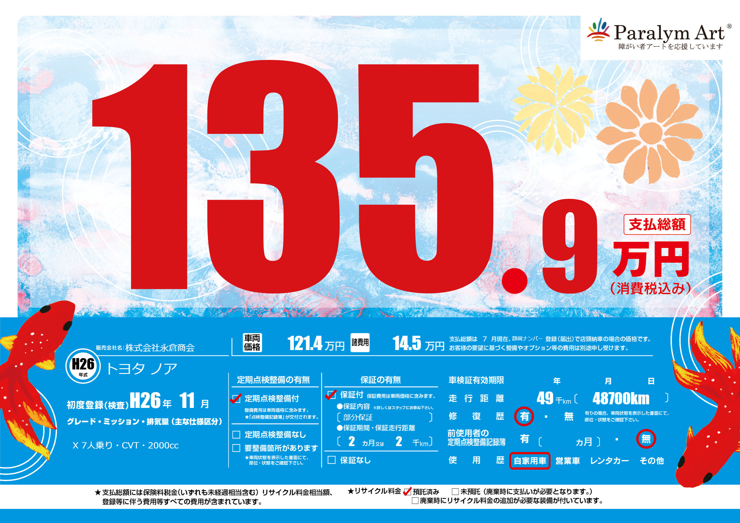 | 走行キロ | 4.9万km | 初年度登録 | H26年11月 |