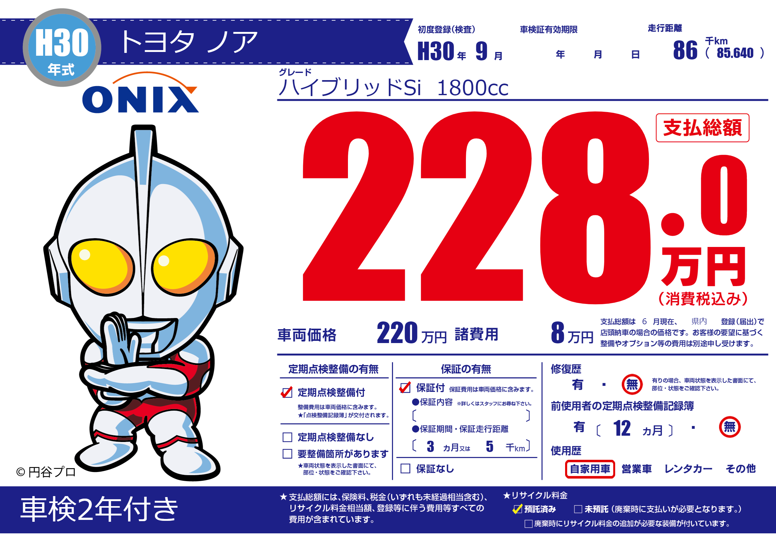 | 走行キロ | 8.6万km | 初年度登録 | H30年9月 |