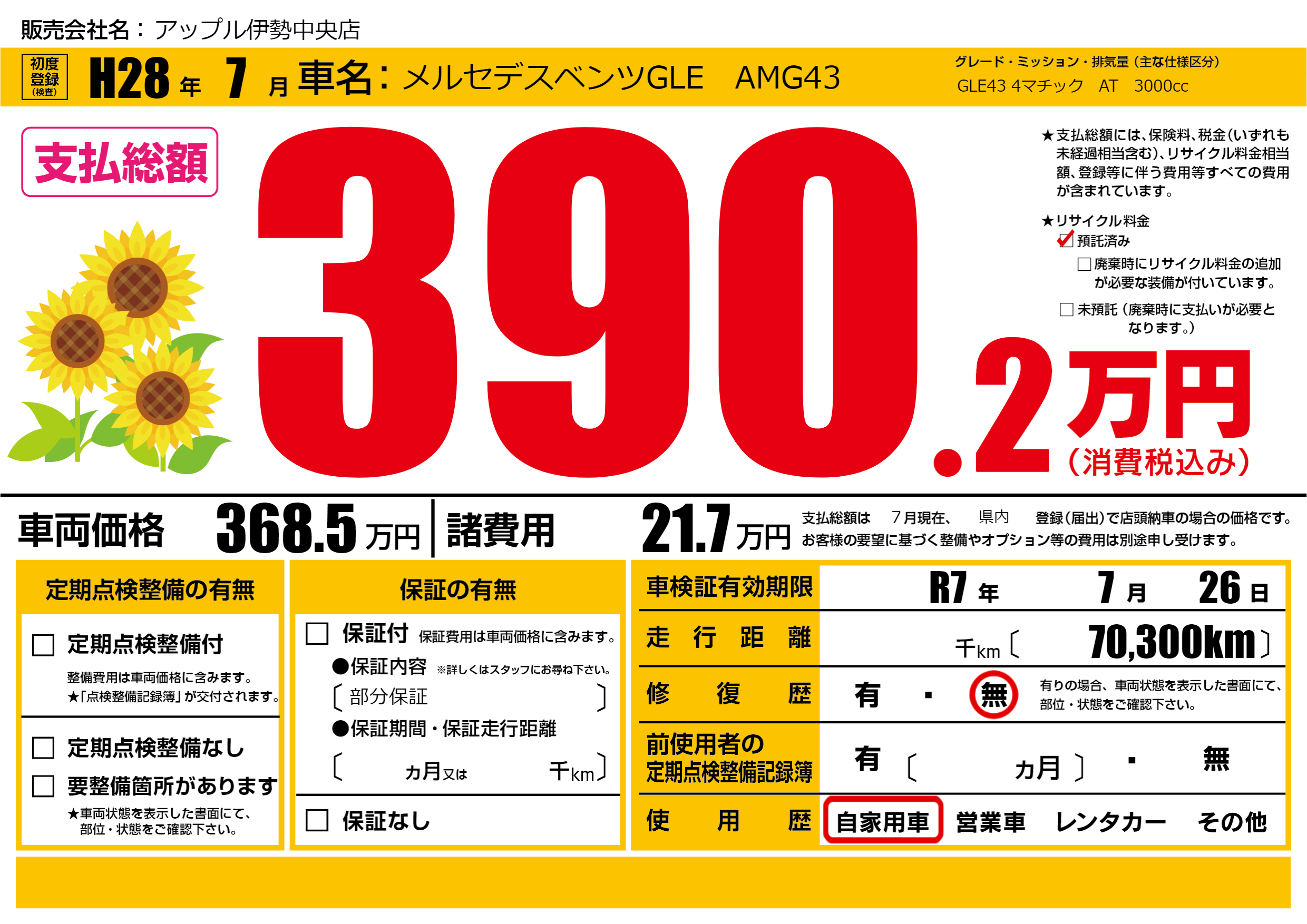 なし | 車検制限 | R7年7月26月 |