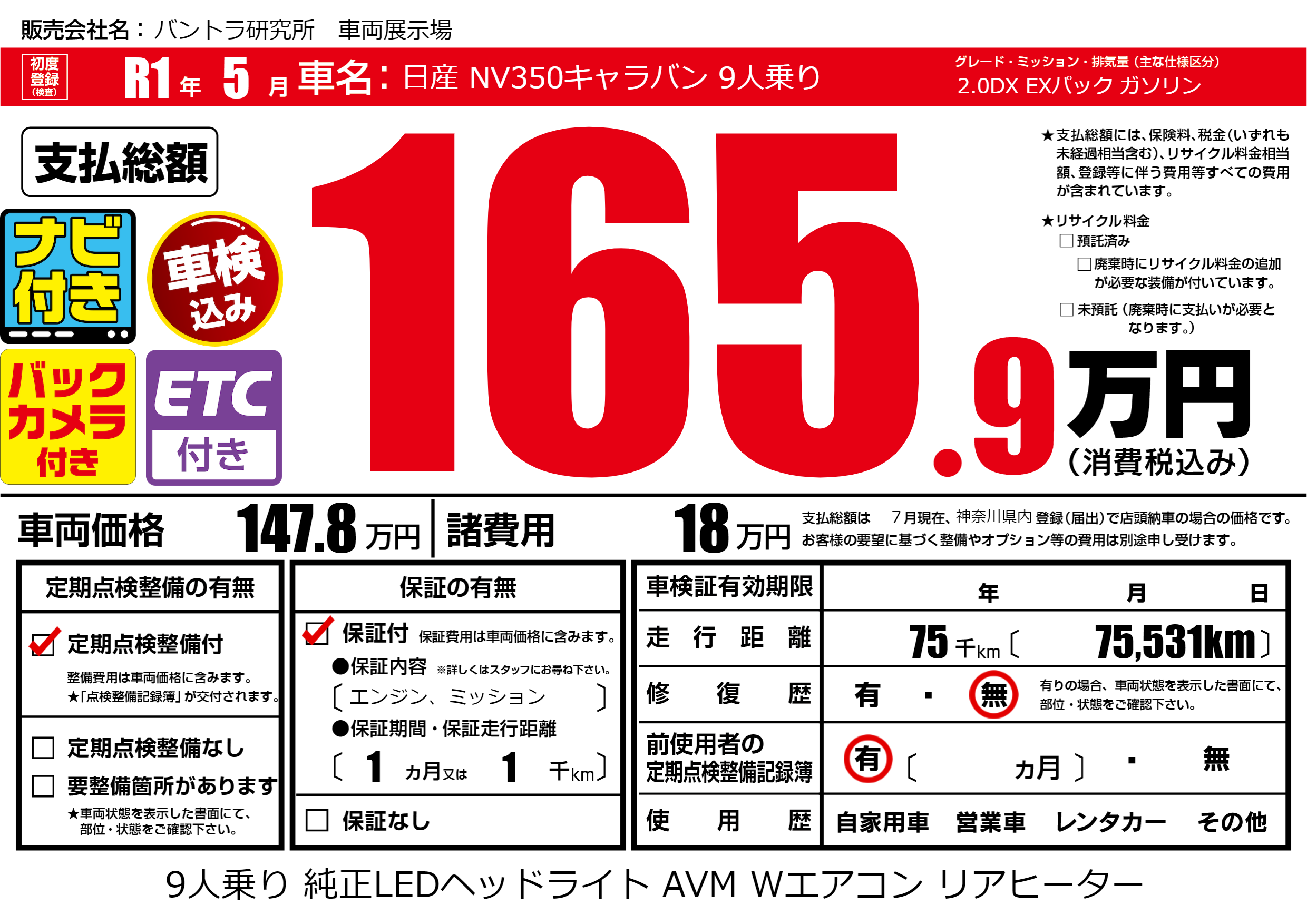 | 走行キロ | 7.5万km | ||