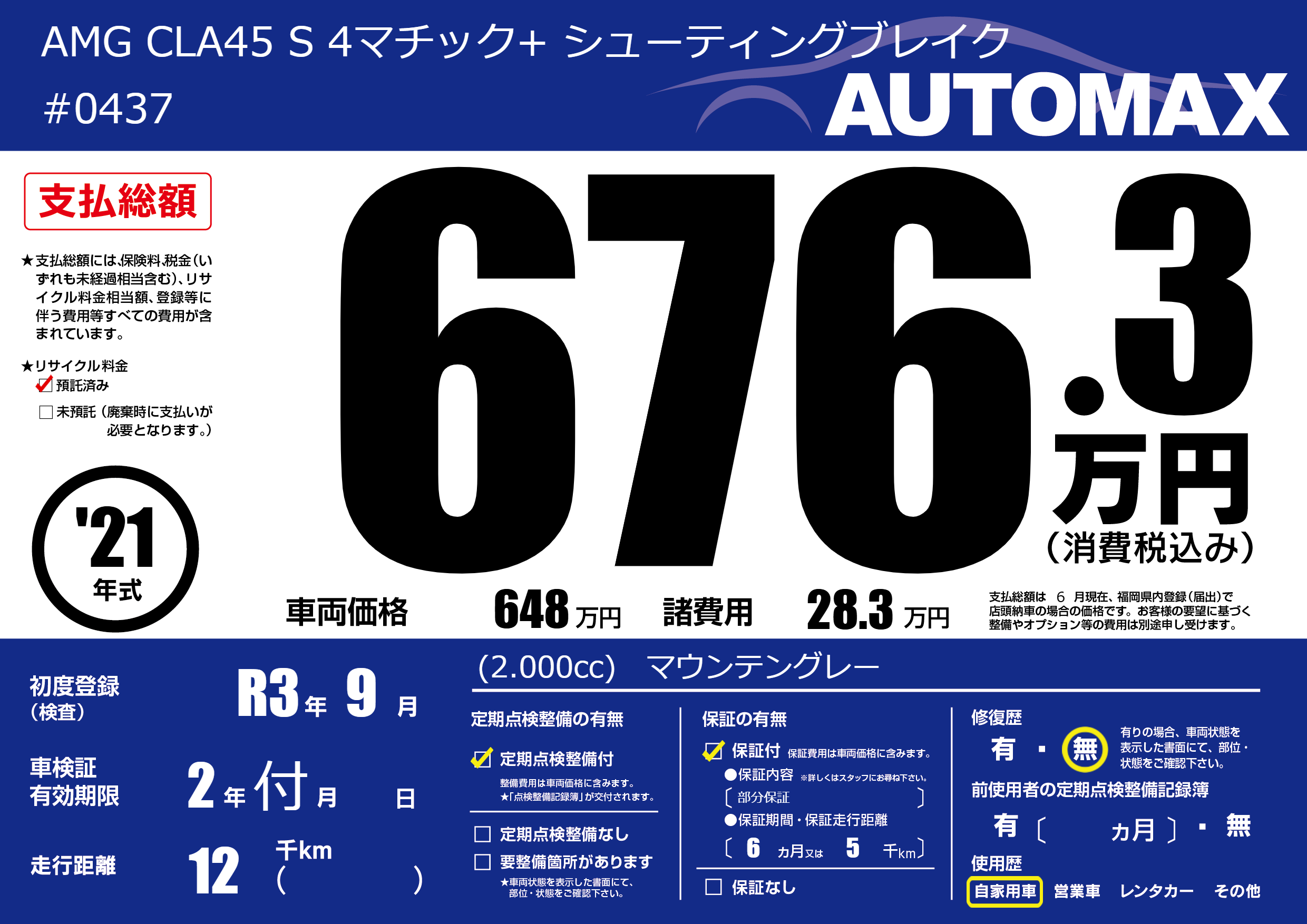 | 定期点検整備 | 定期点検整備あり | ||