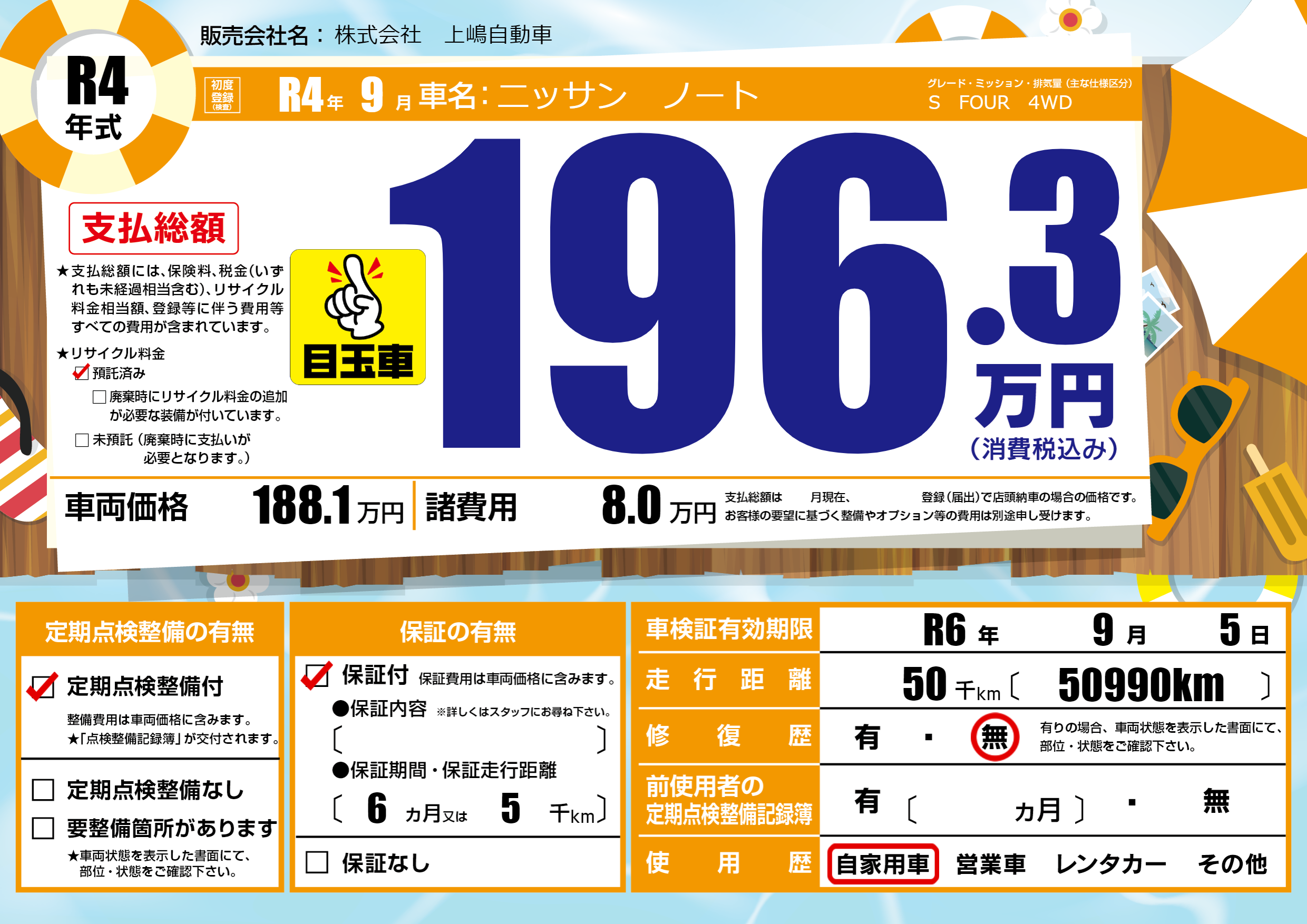 | 走行キロ | 5万km | 初年度登録 | R4年9月 |