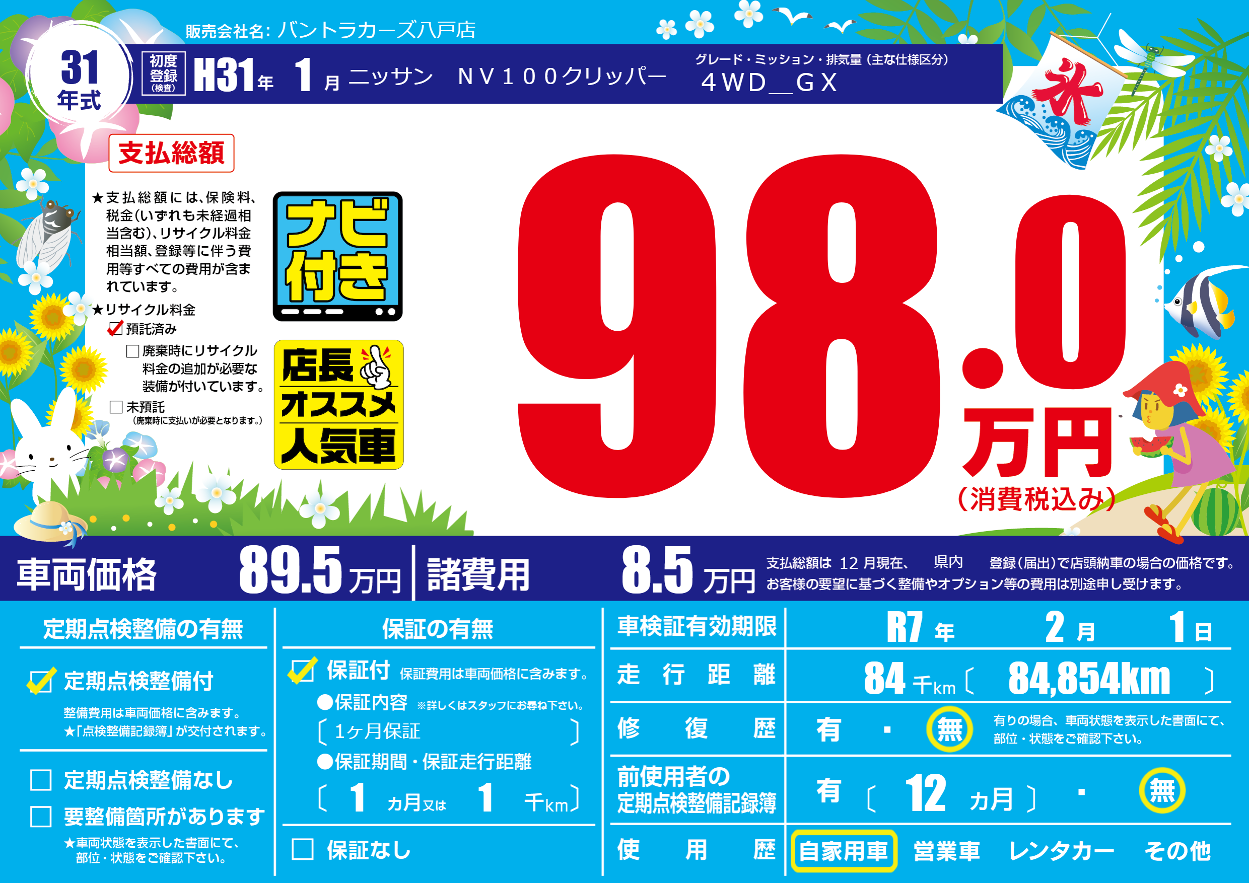 | 車名 | ニッサン NV100クリッパー | グレード ミッション 排気量 |