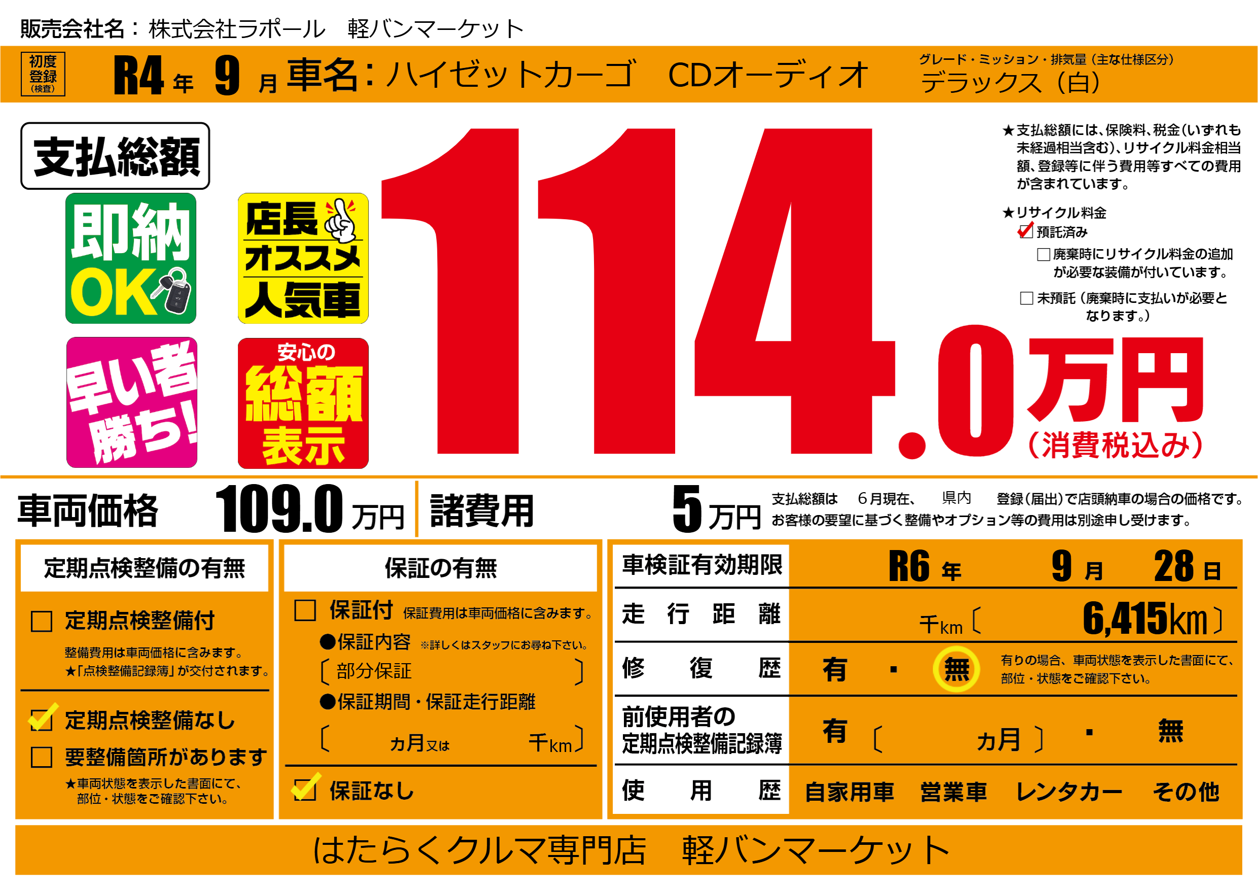 なし | 車検制限 | R6年9月28月 |