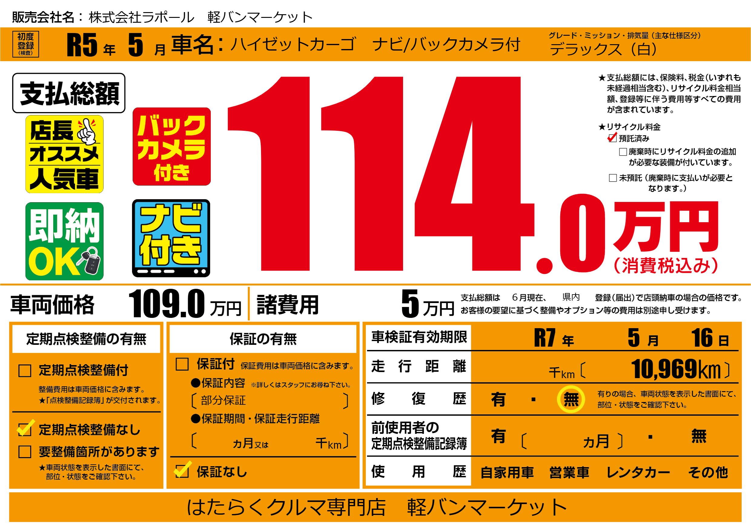 なし | 車検制限 | R7年5月16月 |