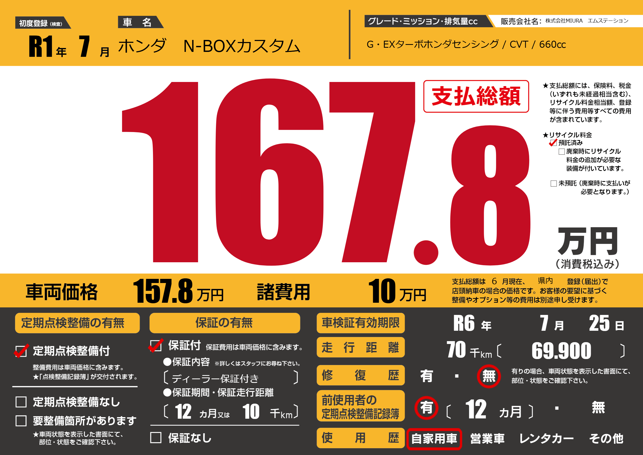 | 車検制限 | R6年 7月 25日 | ||