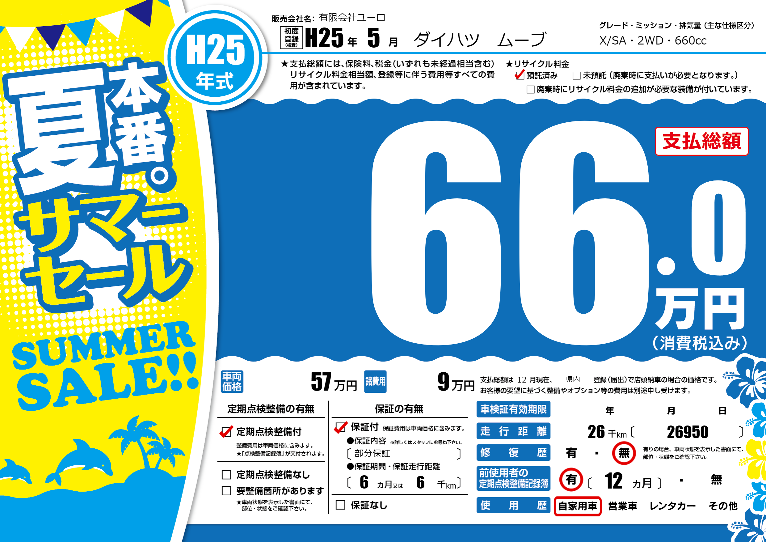 | 走行キロ | 2.6万km | 初年度登録 | H25年5月 |