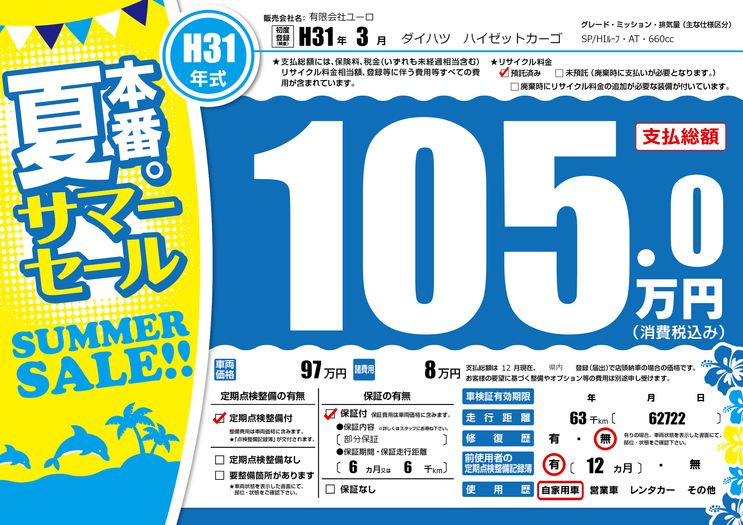 保証付き 保証内容(部分保証) 6ヶ月または(6)千kmまで |