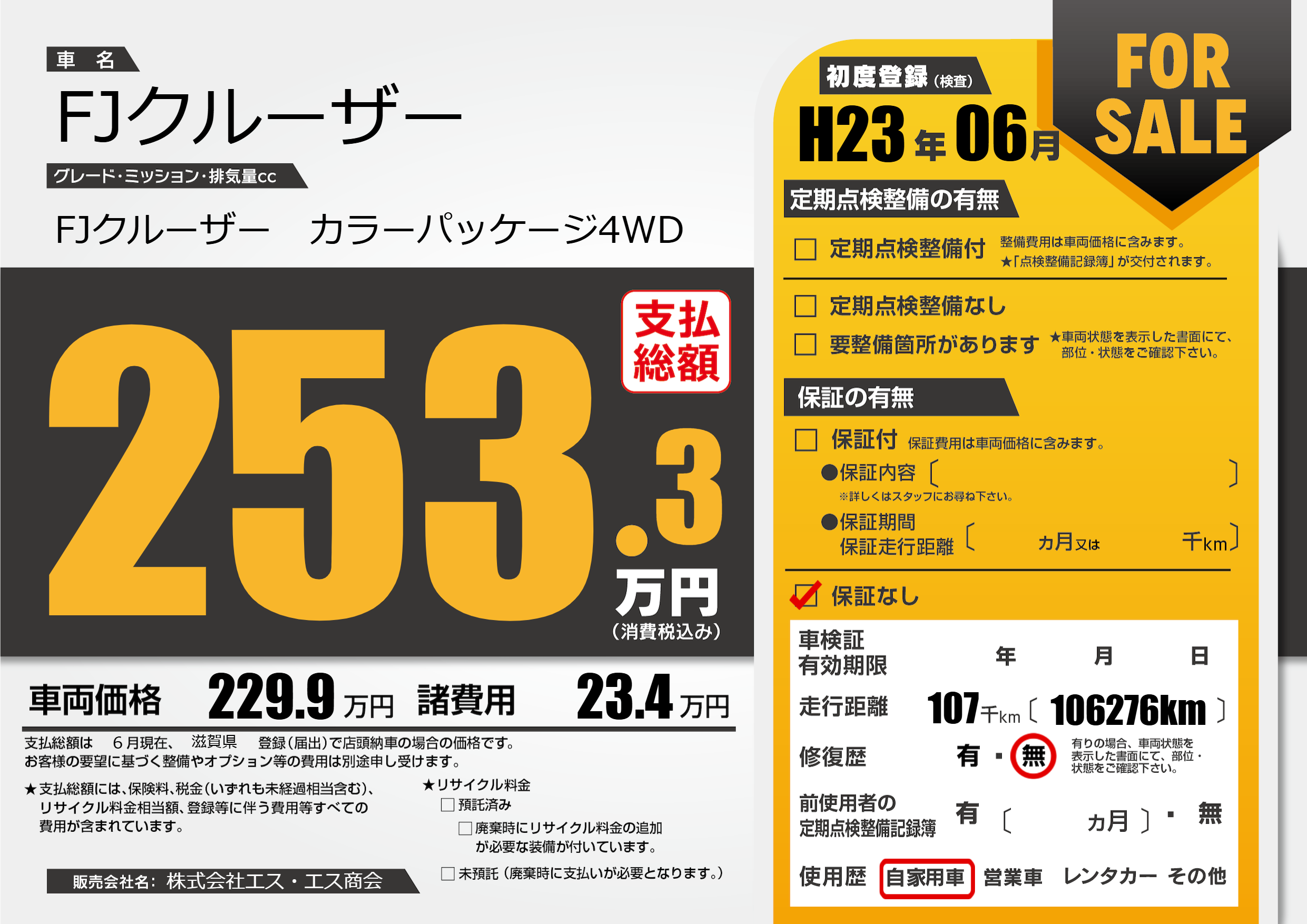 | 車名 | FJクルーザー | グレード ミッション 排気量 |