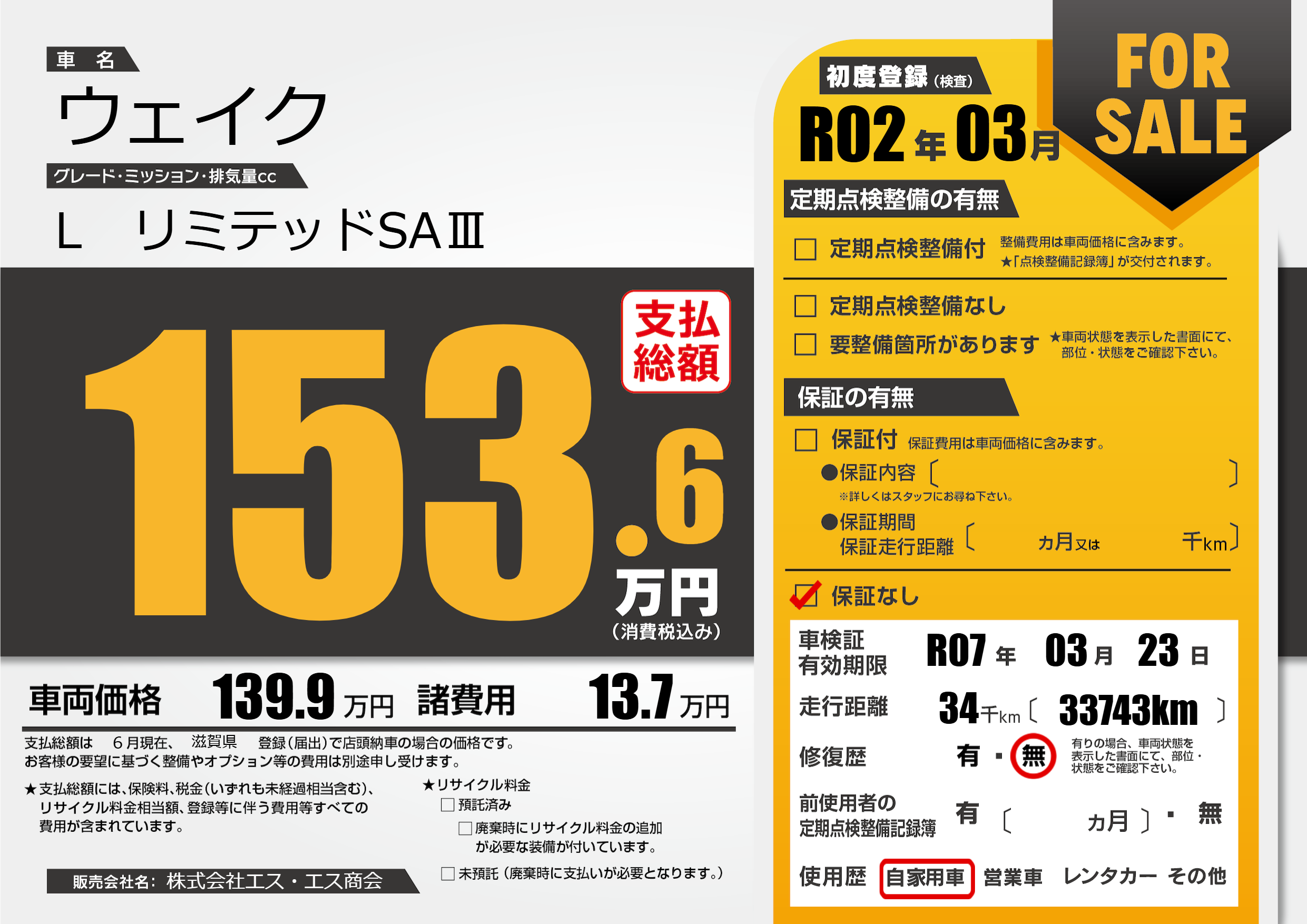 | 車検制限 | R07年 03月 23日 | ||