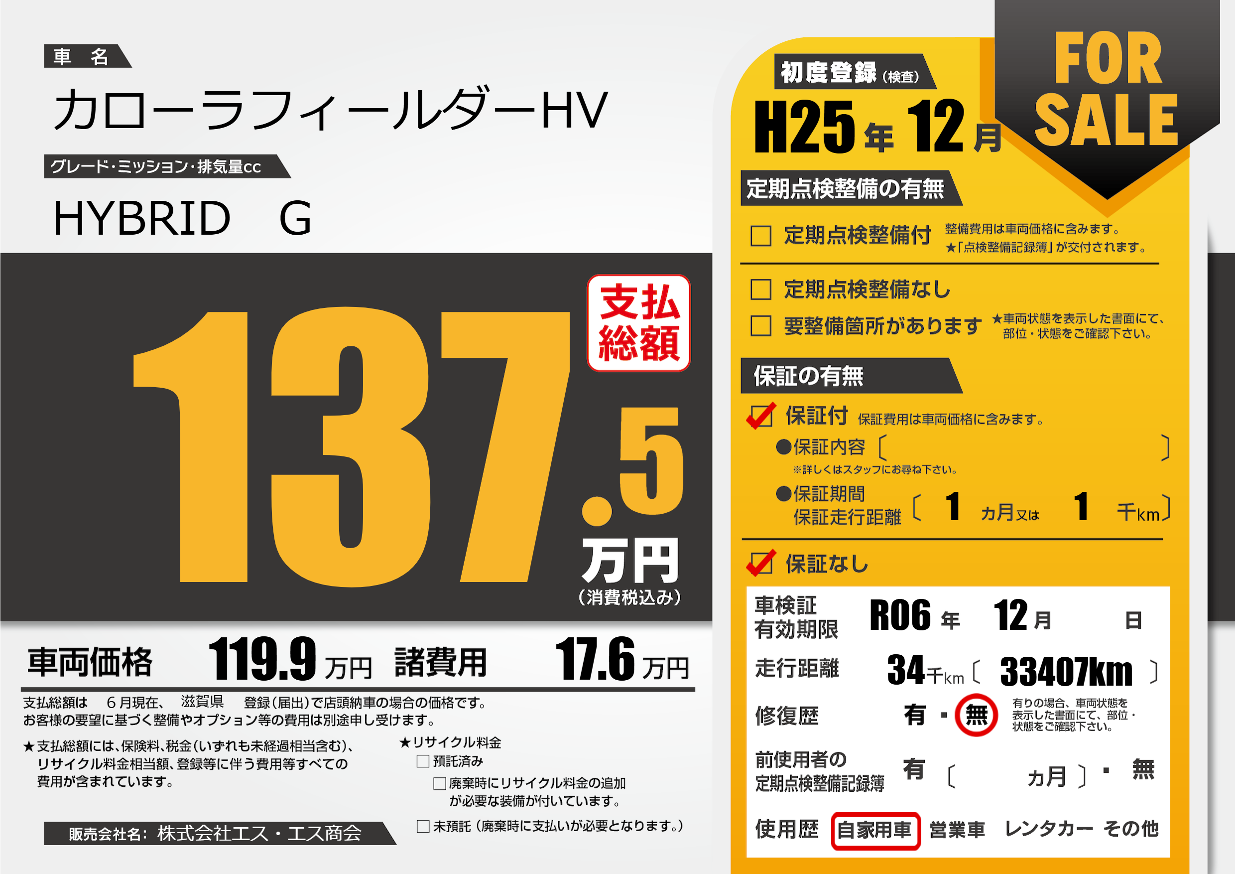なし | 車検制限 | R06年12月---月 |