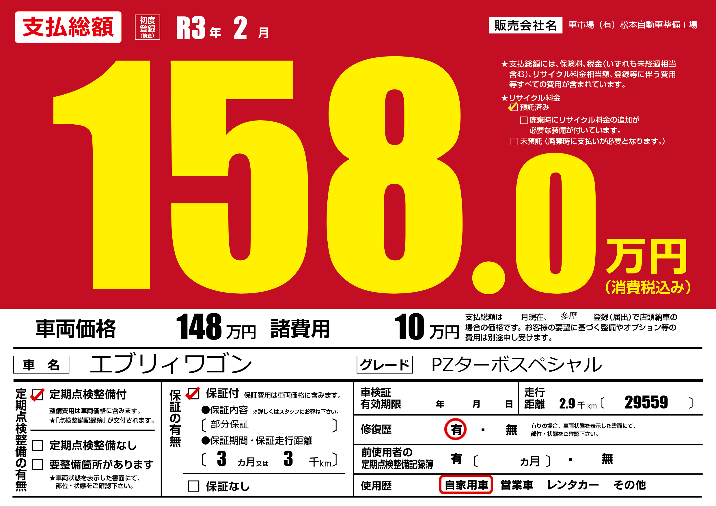 | 車名 | エブリィワゴン | グレード ミッション 排気量 |