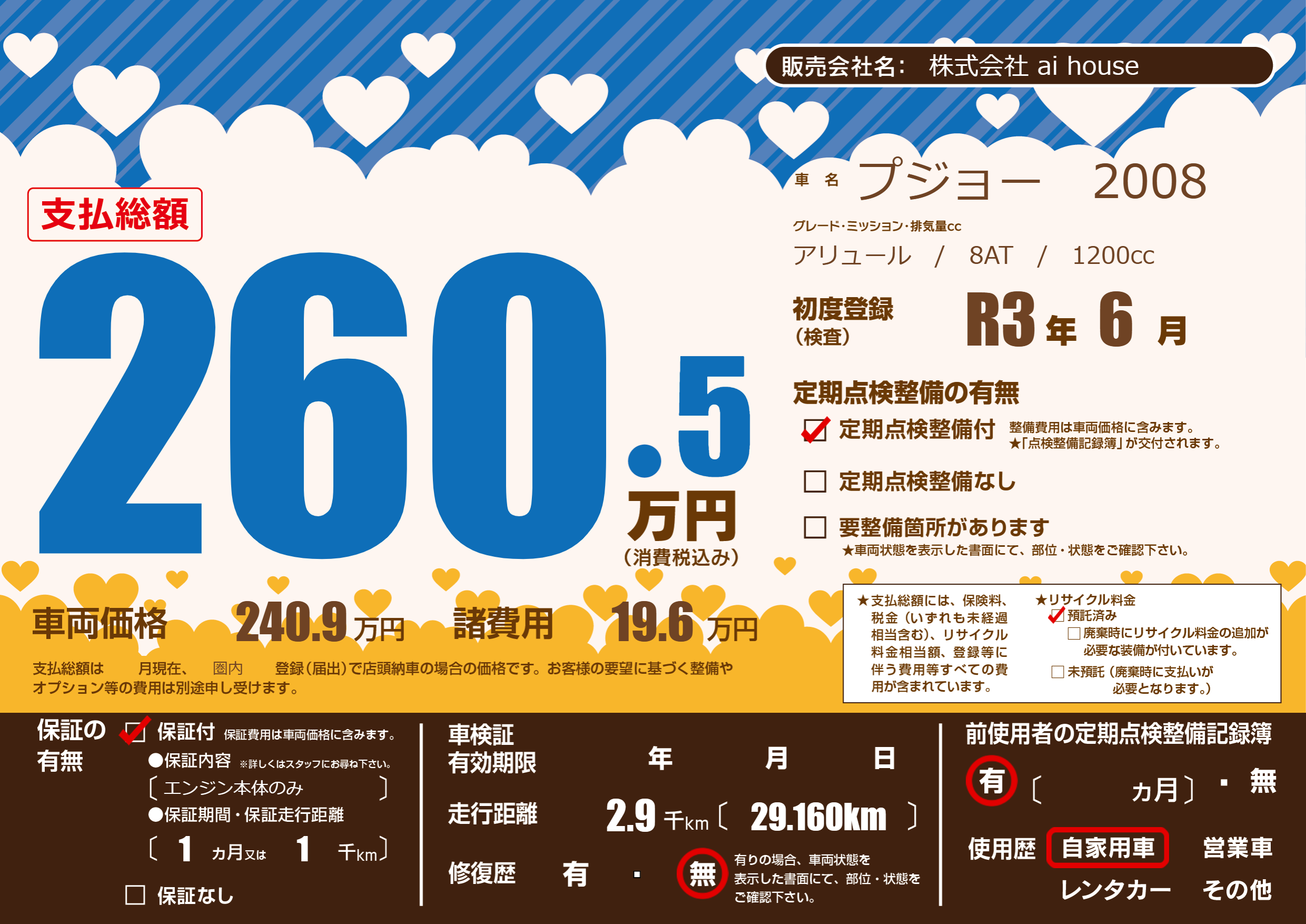 | 車名 | プジョー 2008 | グレード ミッション 排気量 |