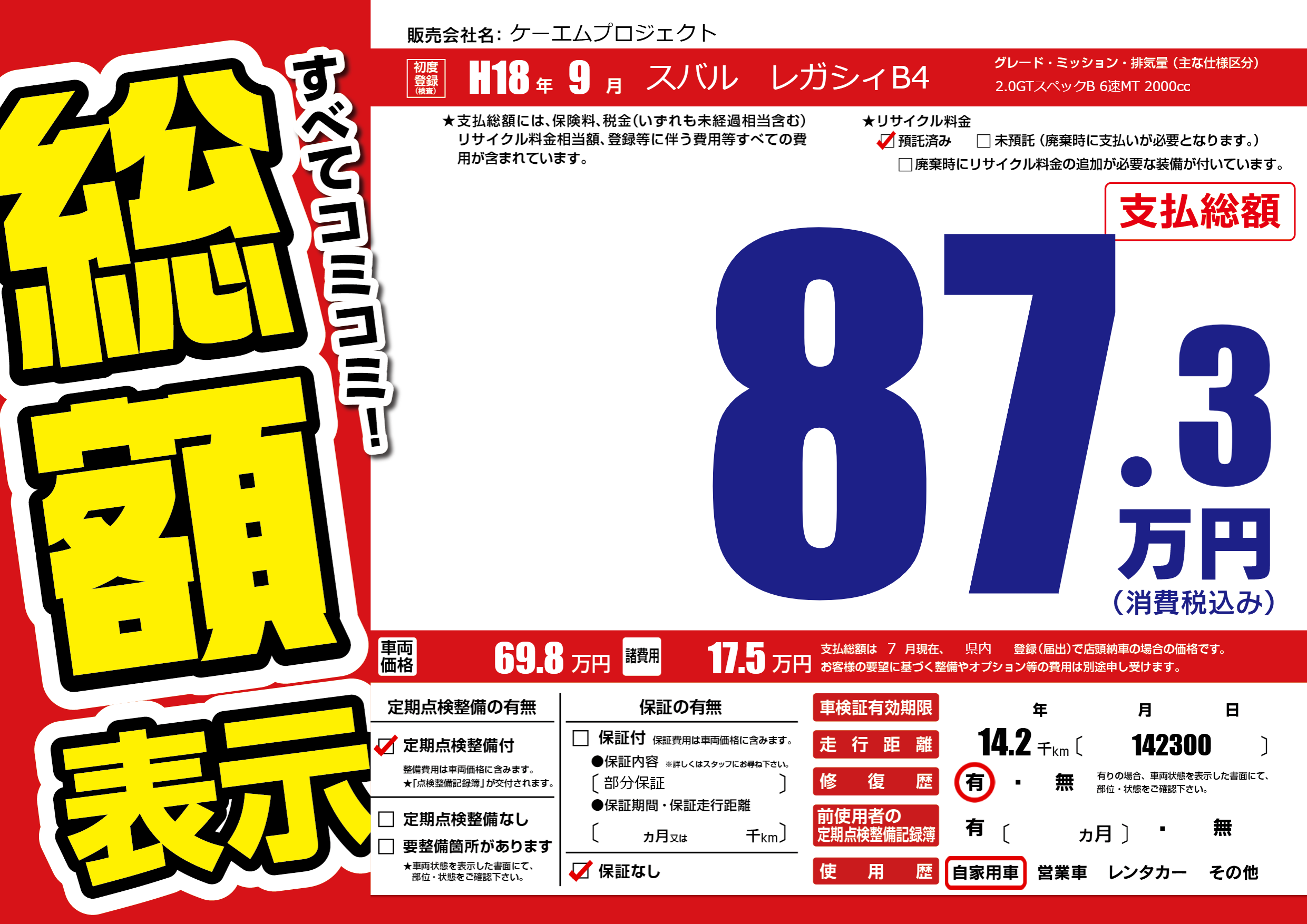 | 定期点検整備 | 定期点検整備あり | ||