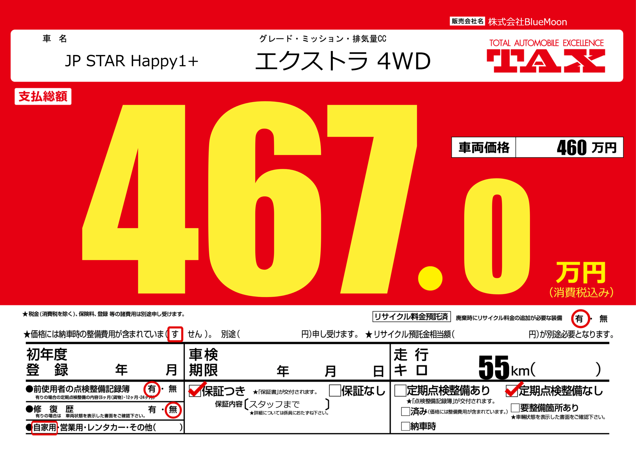 | 車名 | JP STAR Happy1+ | グレード ミッション 排気量 |