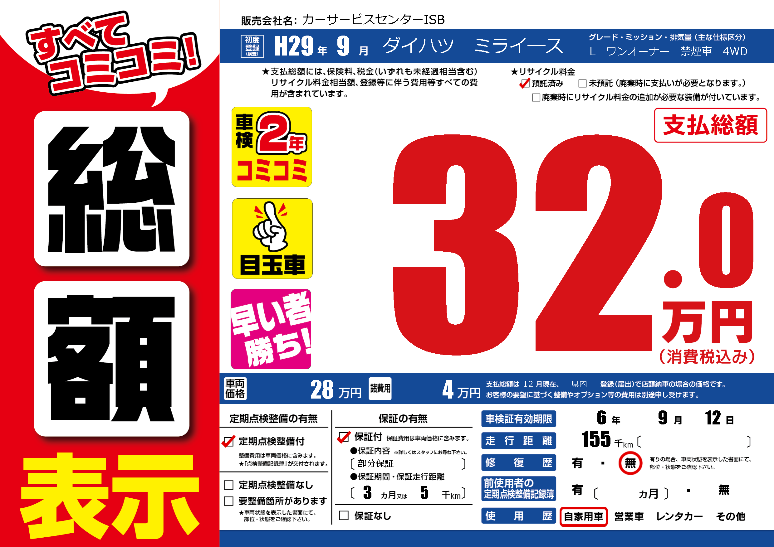 保証付き 保証内容(部分保証) 3ヶ月または(5)千kmまで |