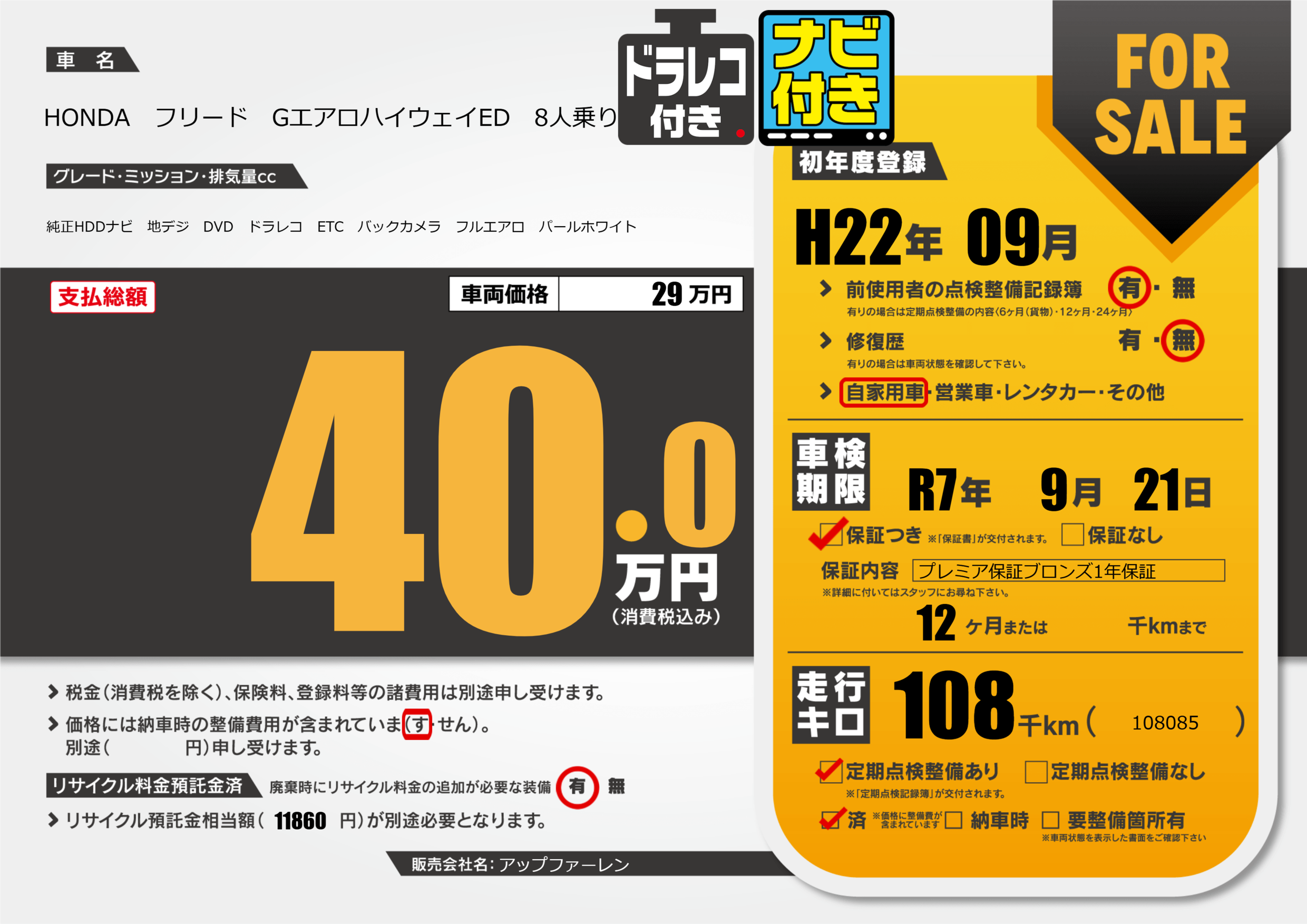 | 定期点検整備 | 定期点検整備あり 定期点検整備済み | ||