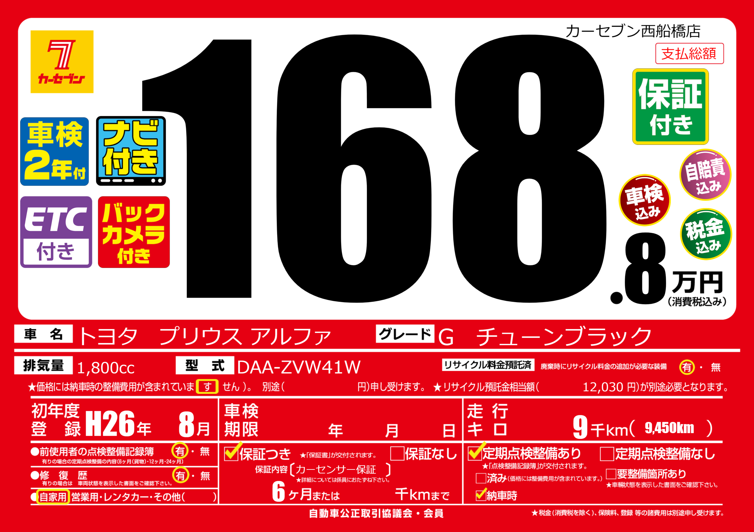 | 定期点検整備 | 定期点検整備あり 納車時あり | ||