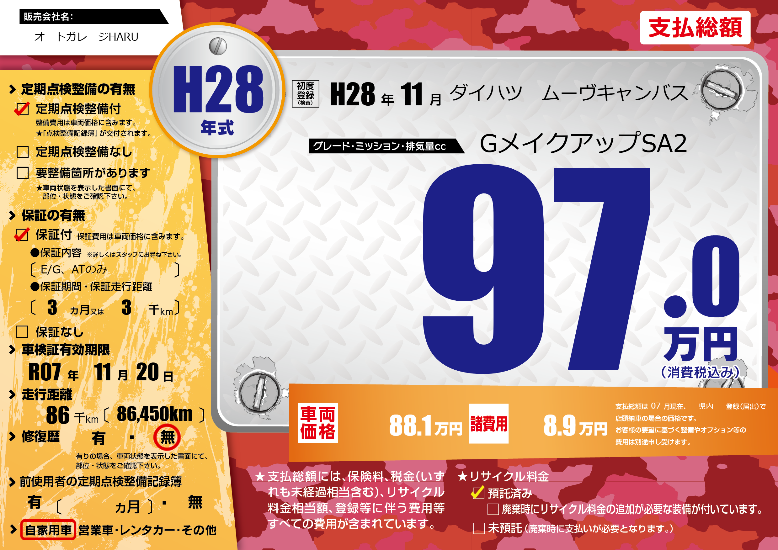 なし | 車検制限 | R07年11月20月 |