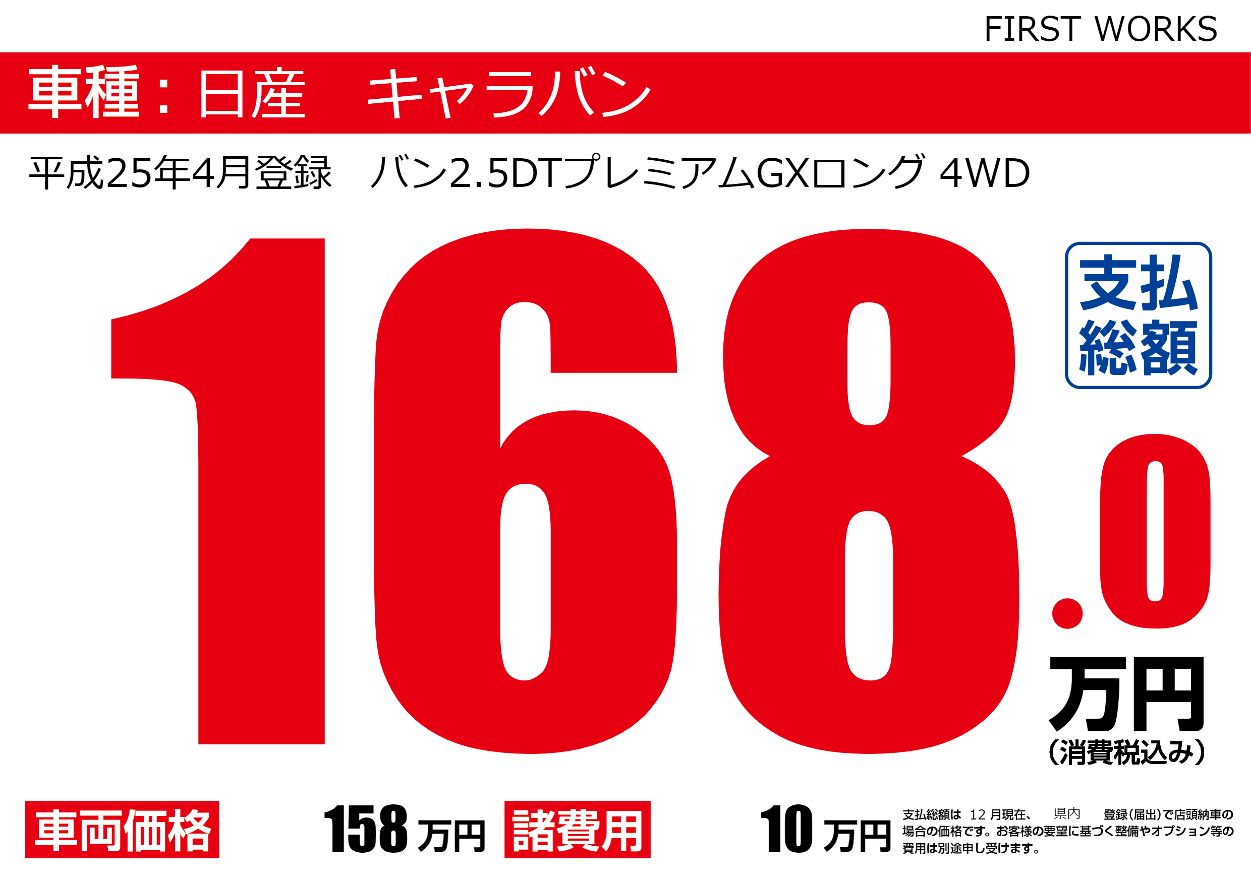 平成25年4月登録 バン2.5DTプレミアムGXロング 4WD |