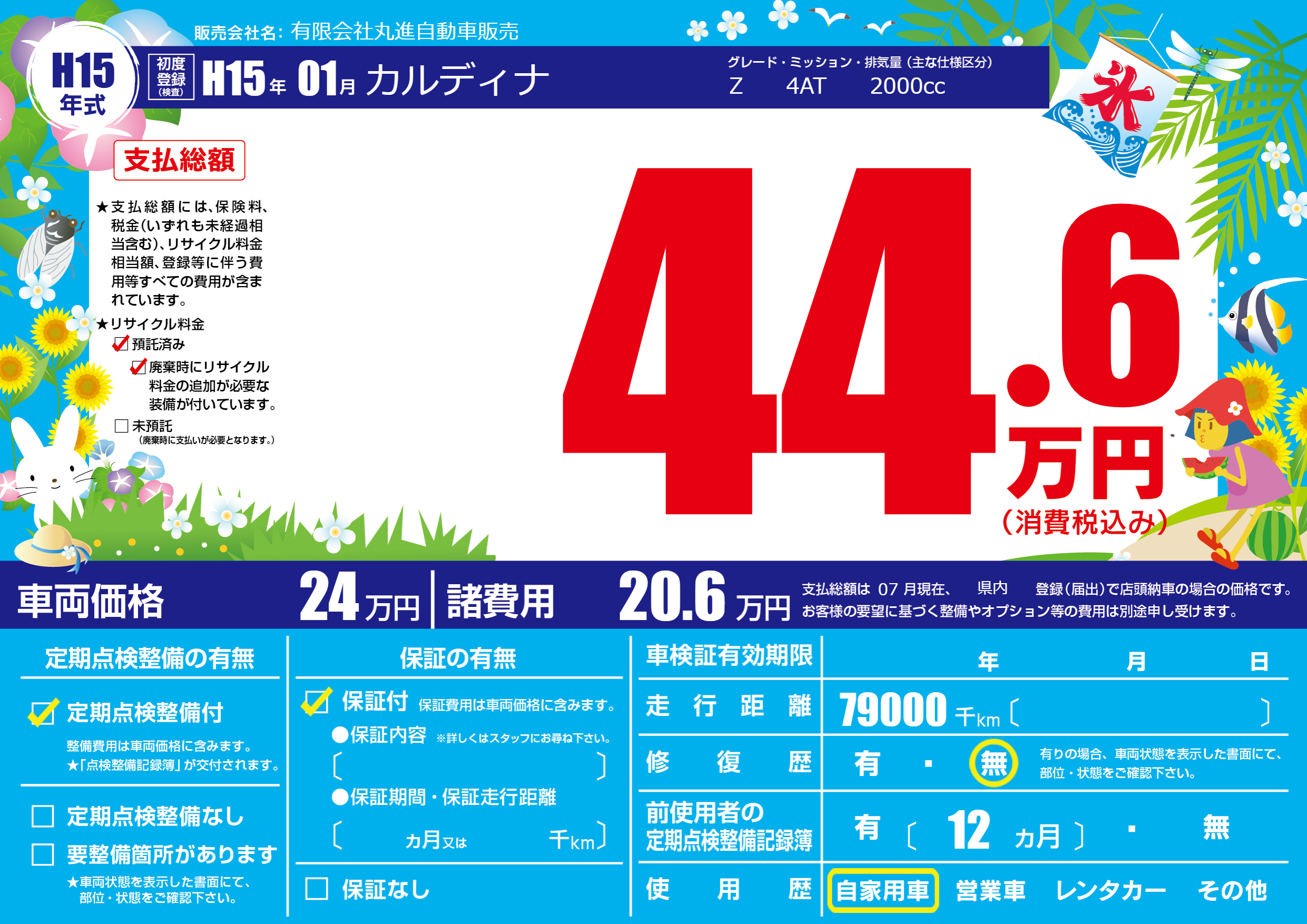 | 車名 | カルディナ | グレード ミッション 排気量 |