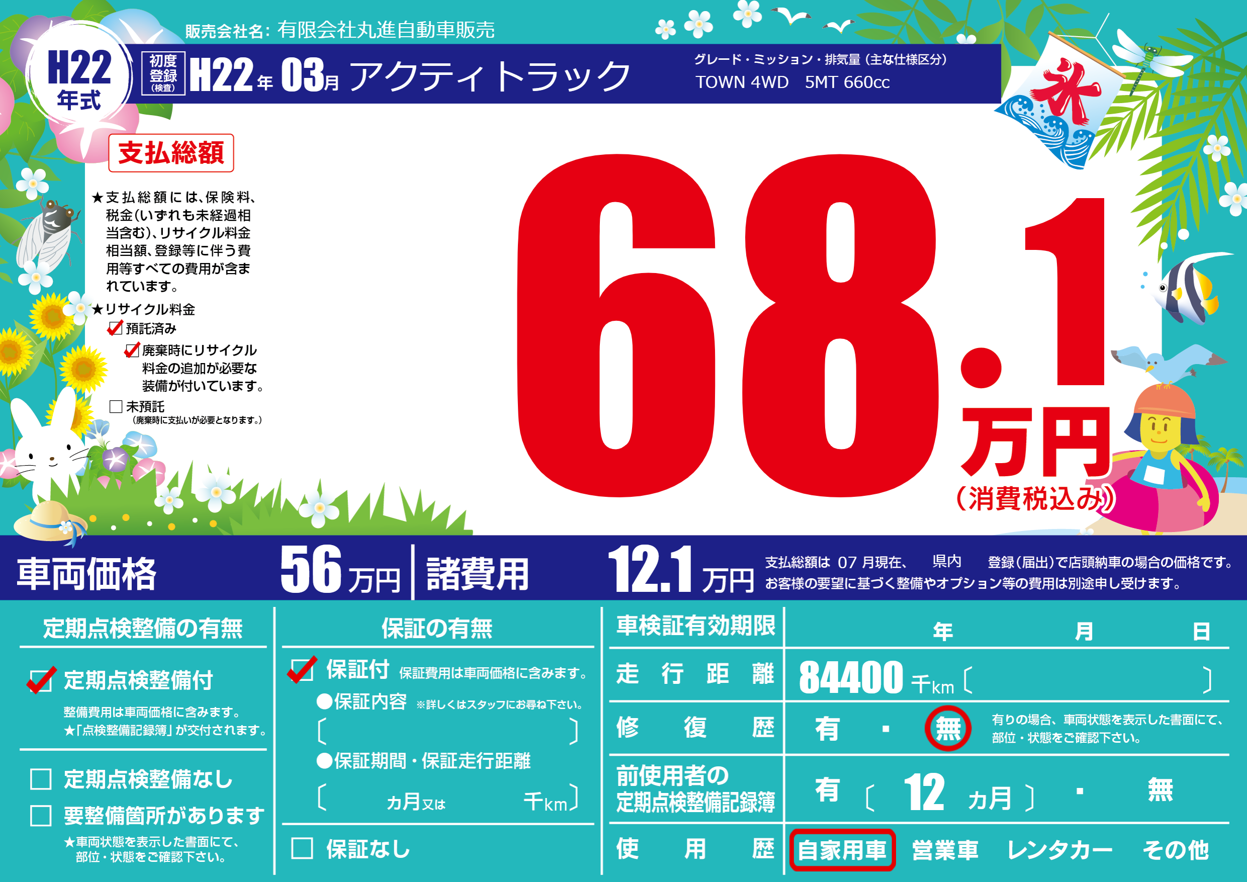 | 車名 | アクティトラック | グレード ミッション 排気量 |