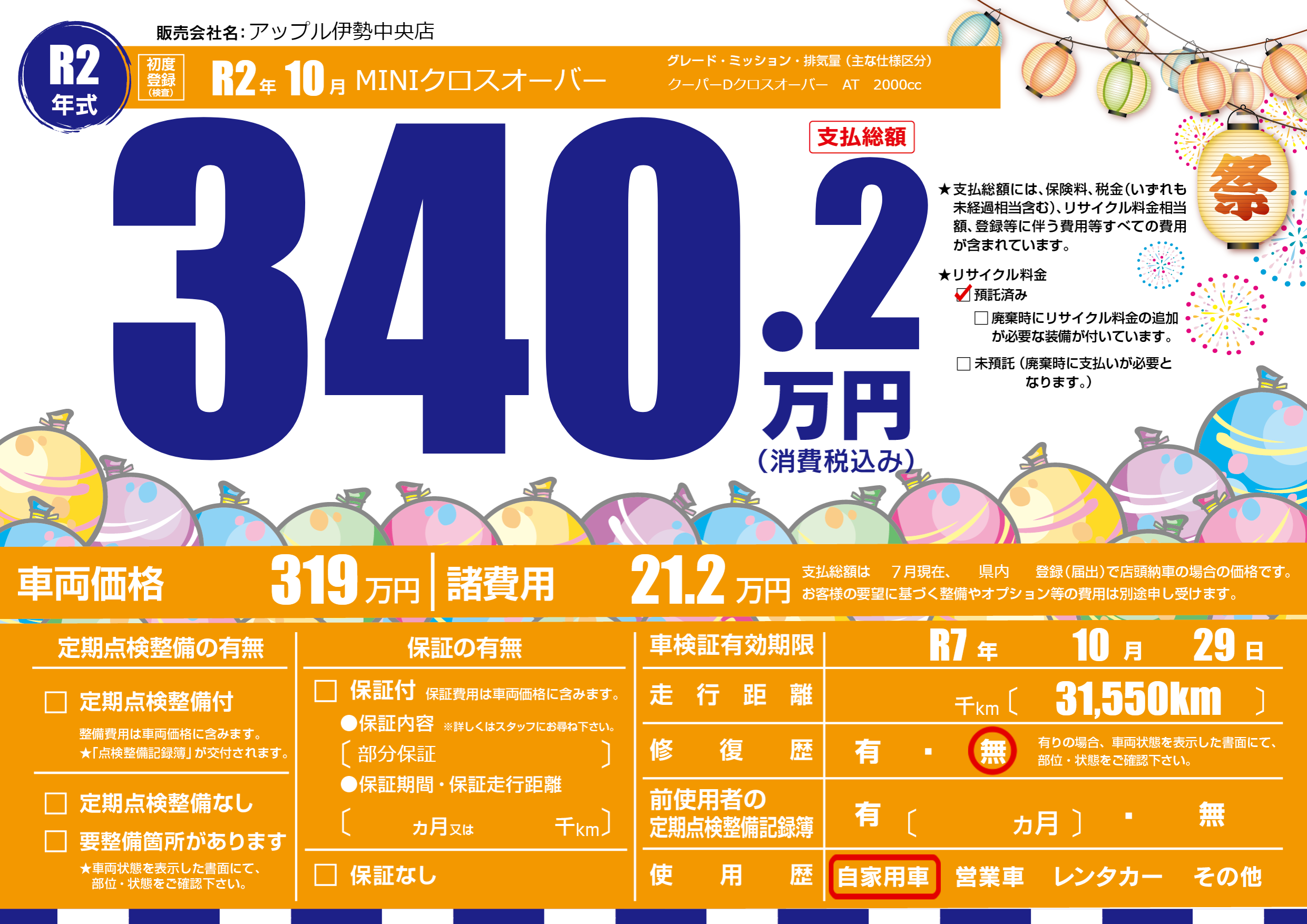 | 走行キロ | - | 初年度登録 | R2年10月 |