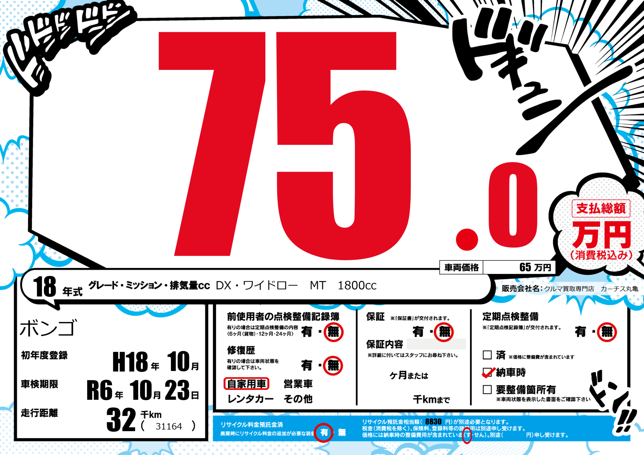 | 車名 | ボンゴ | グレード ミッション 排気量 |