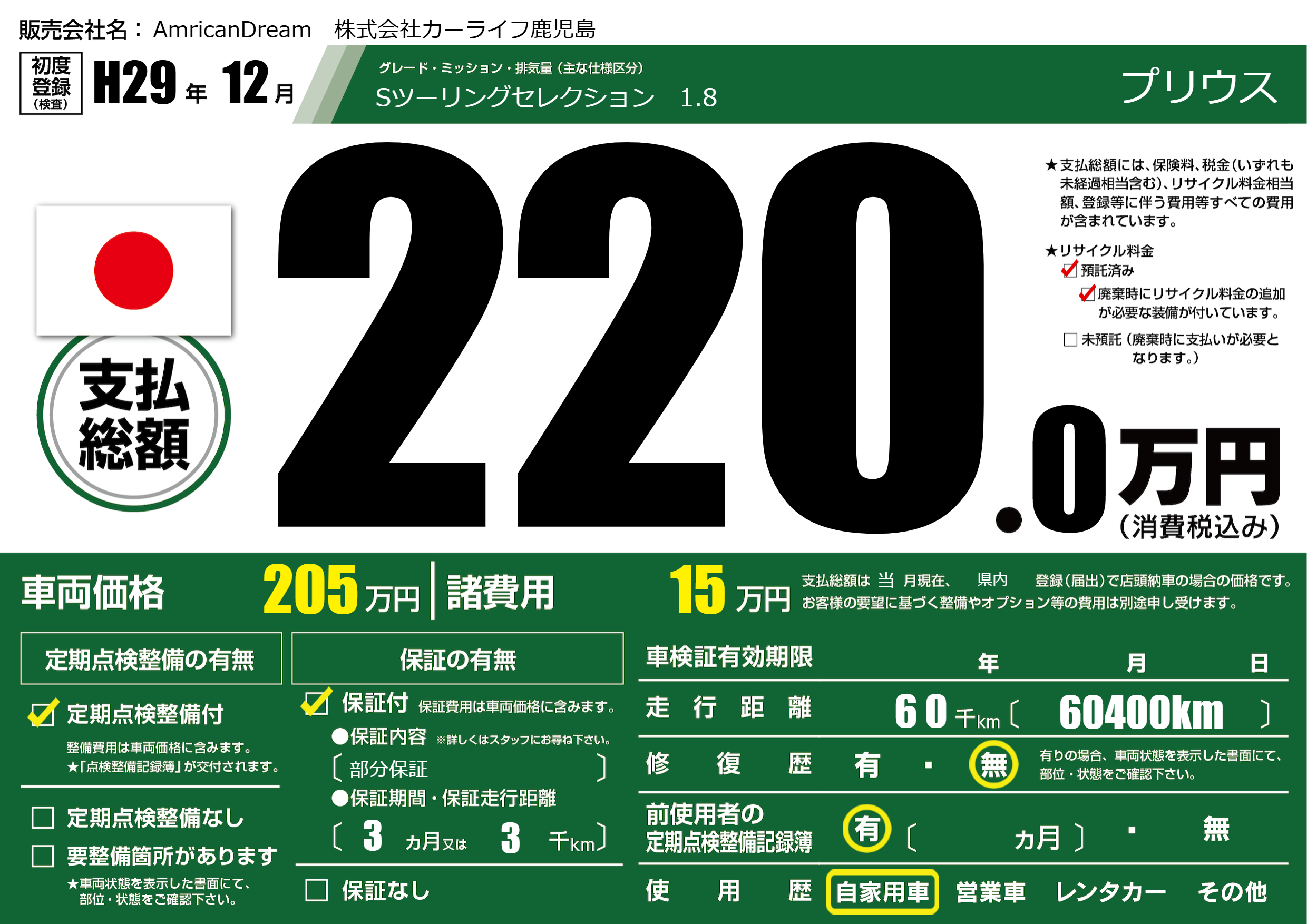 | 定期点検整備 | 定期点検整備あり | ||