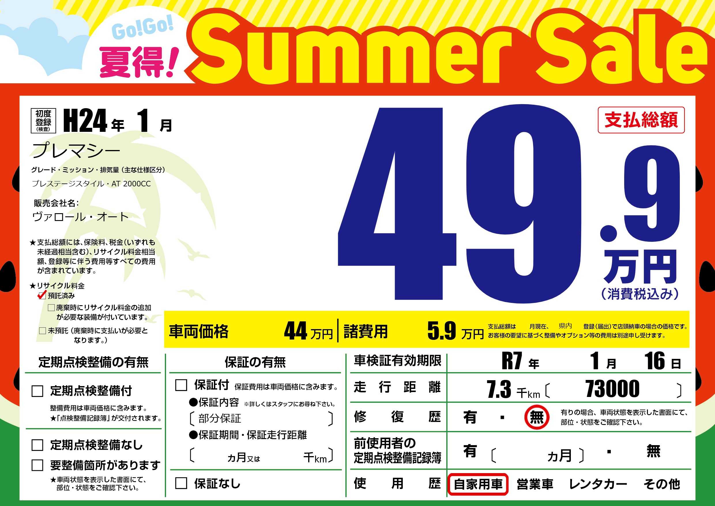 | 走行キロ | 0.7万km | 初年度登録 | H24年1月 |