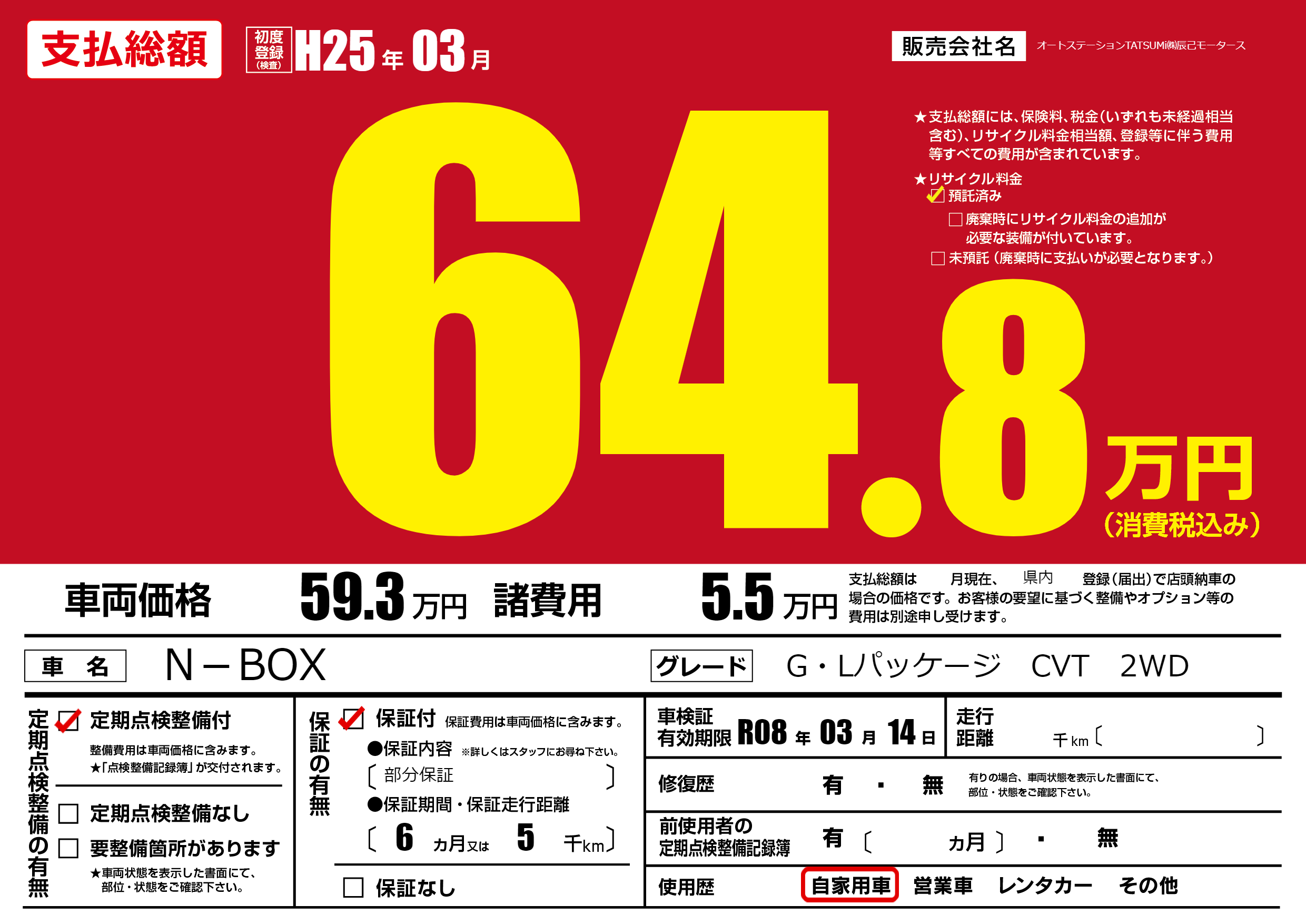 なし | 車検制限 | R08年03月14月 |