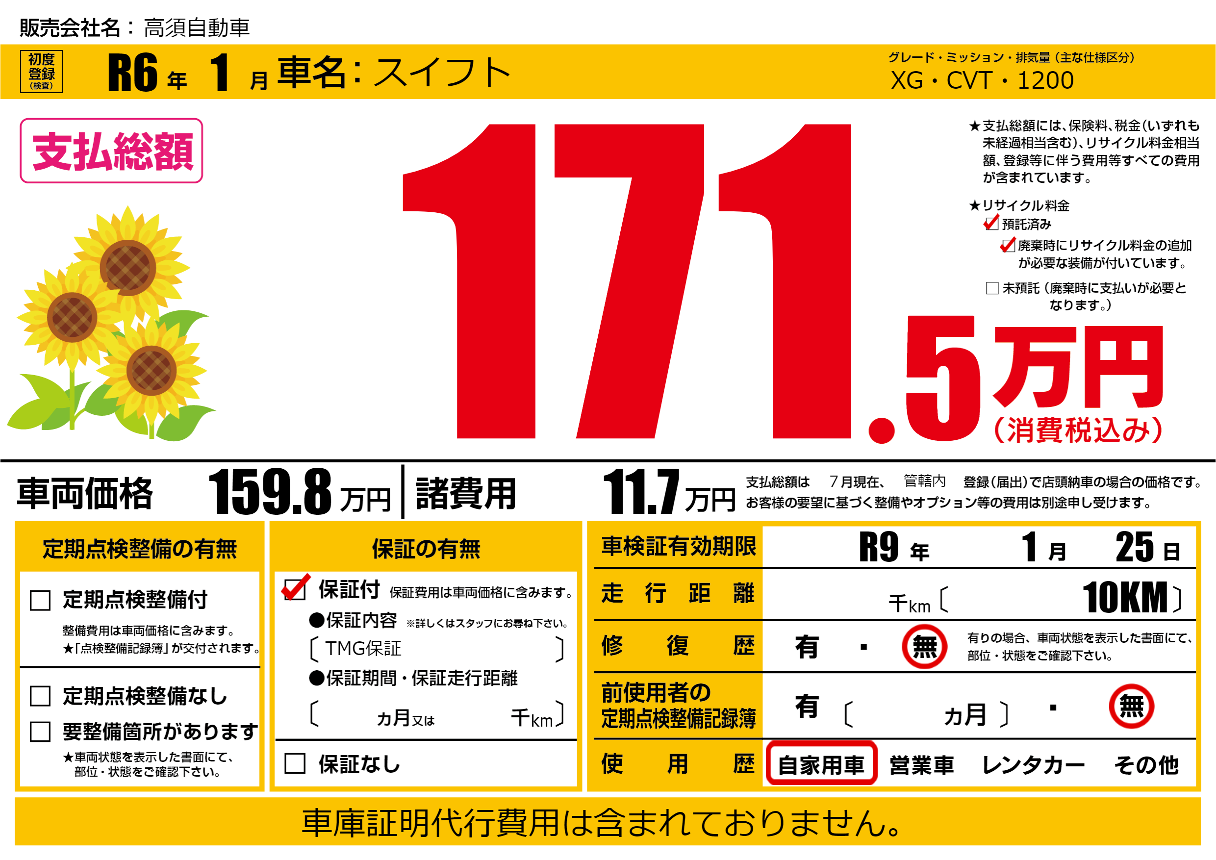 なし | 車検制限 | R9年1月25月 |