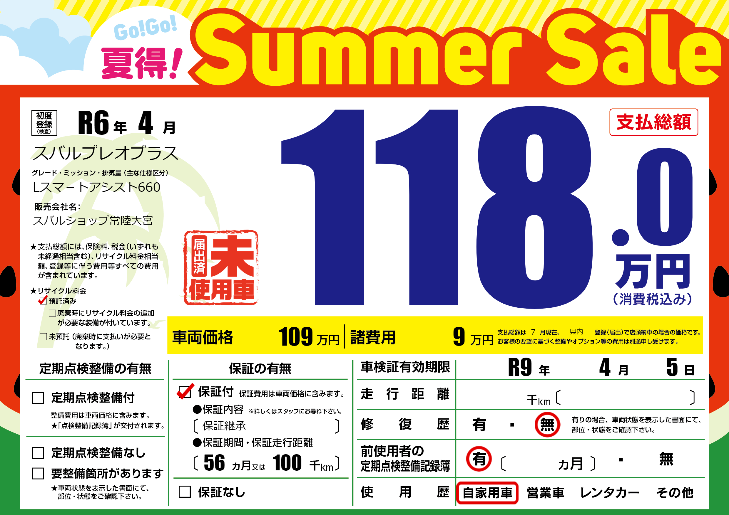 | 車名 | スバルプレオプラス | グレード ミッション 排気量 |