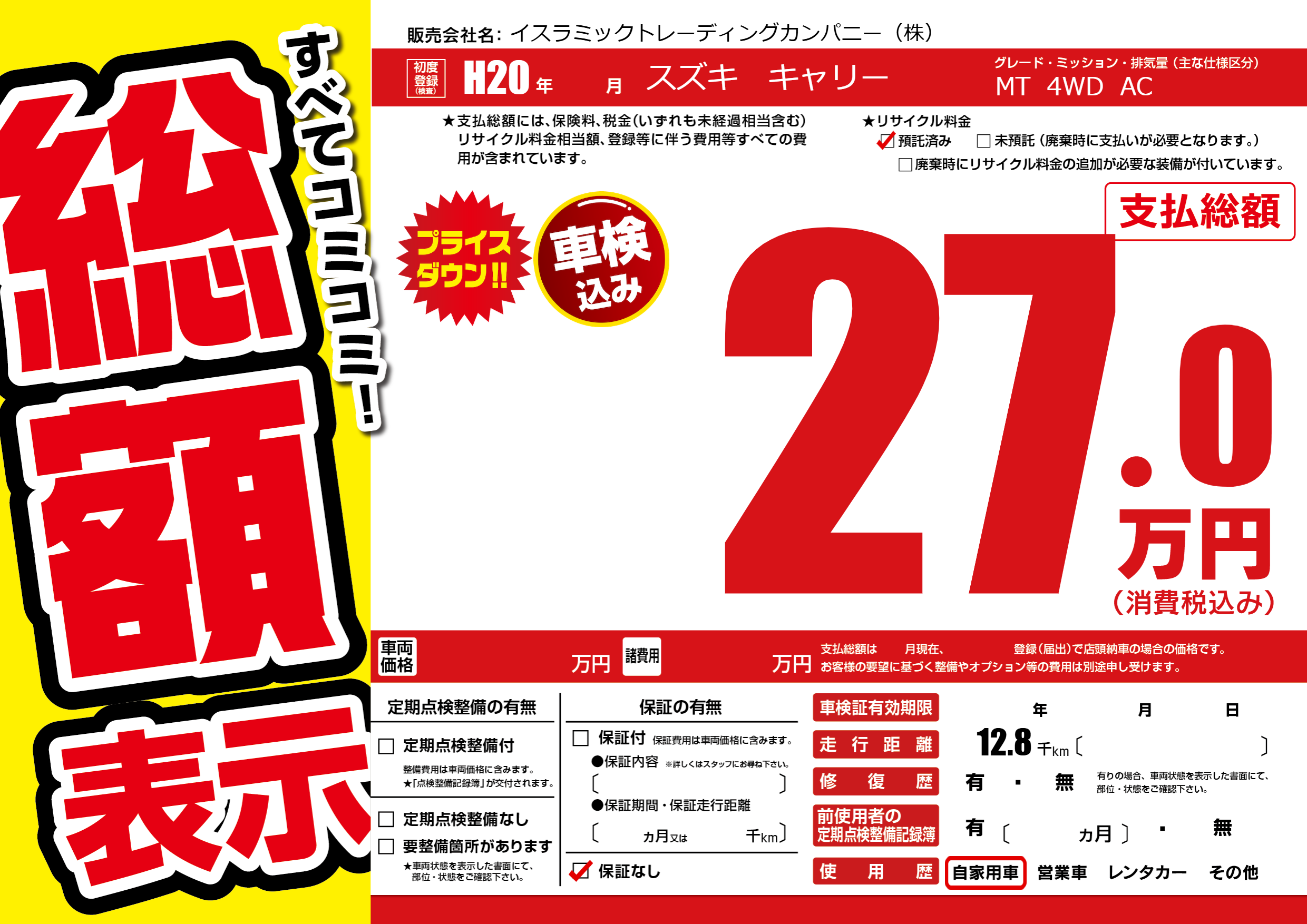 | 車検制限 | - 年 - 月 - 日 | ||
