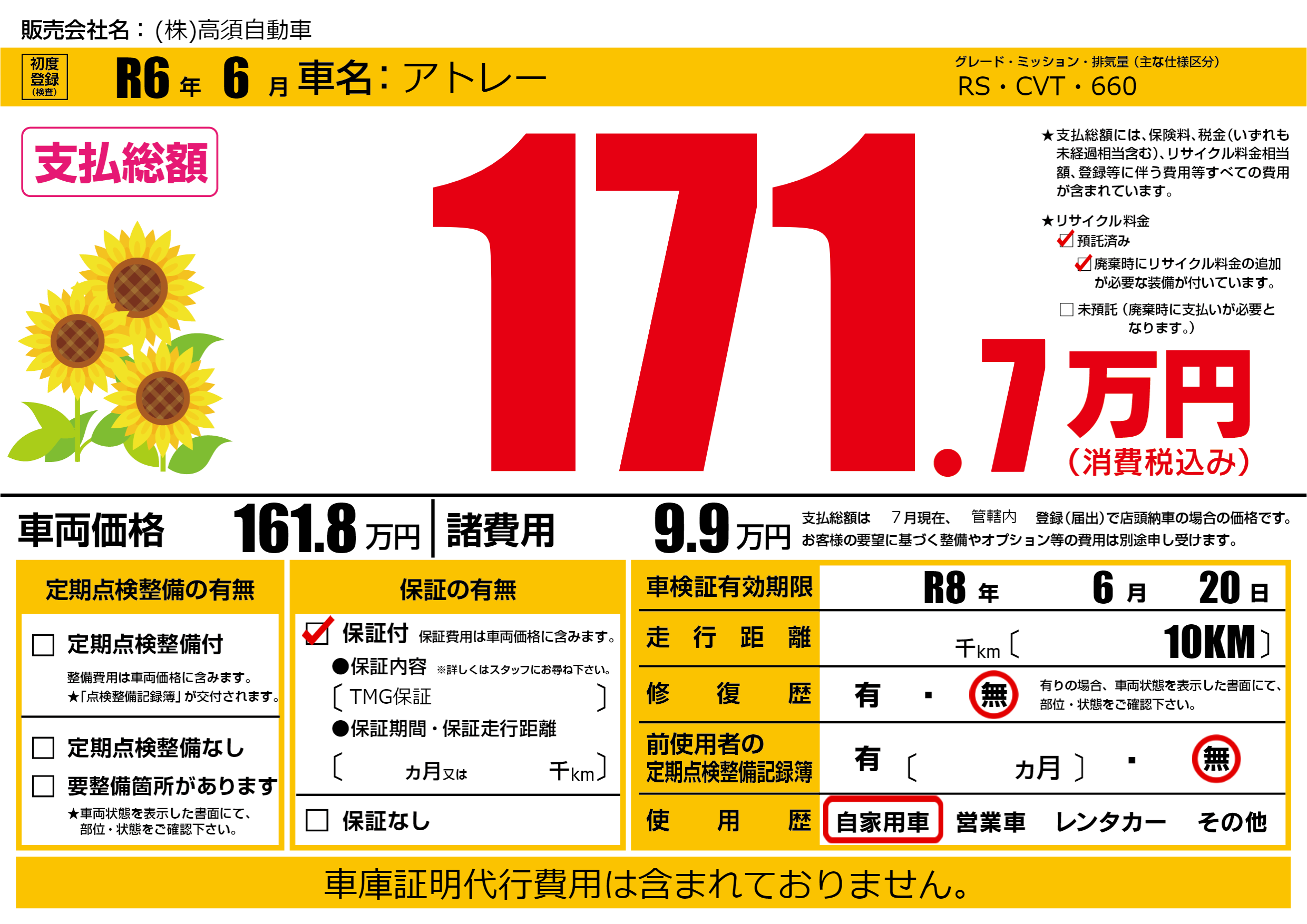 なし | 車検制限 | R8年6月20月 |