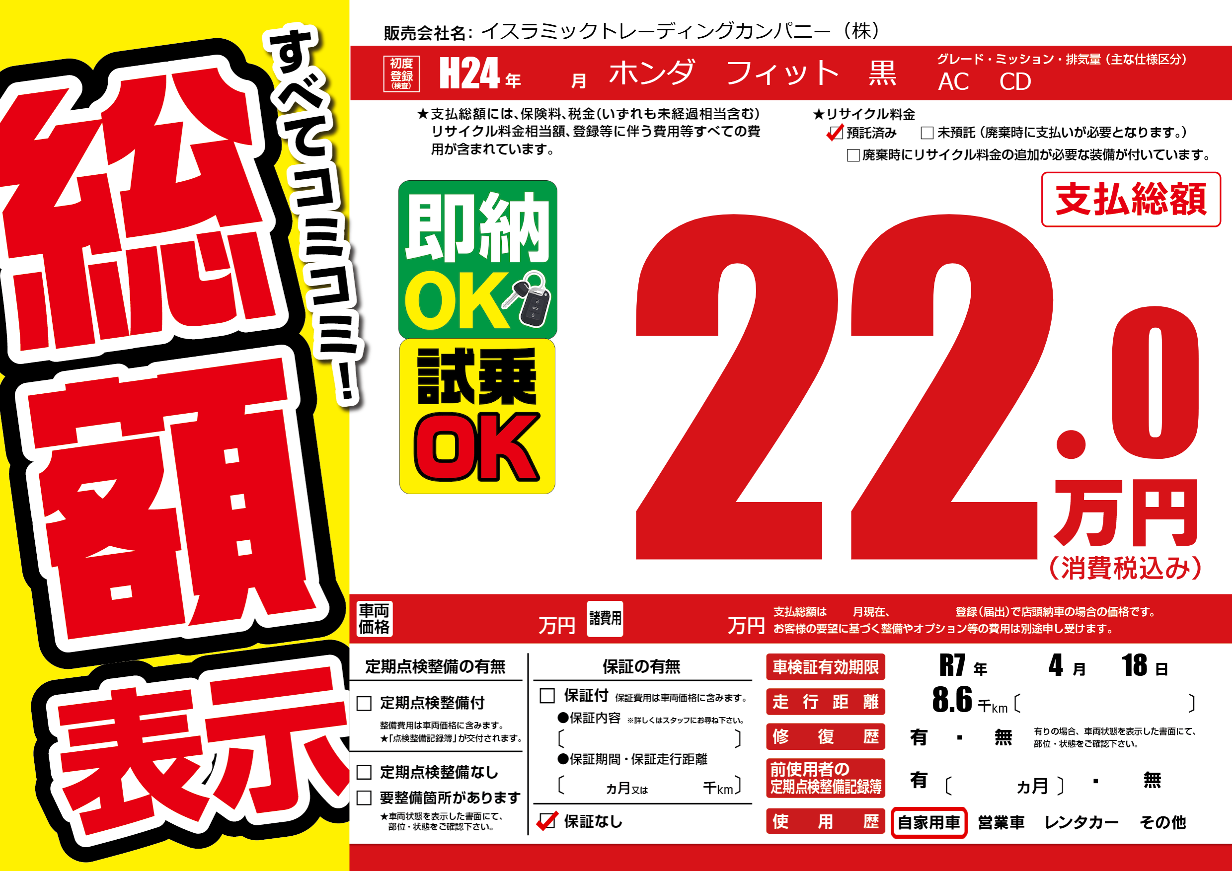 | 車検制限 | R7年 4月 18日 | ||
