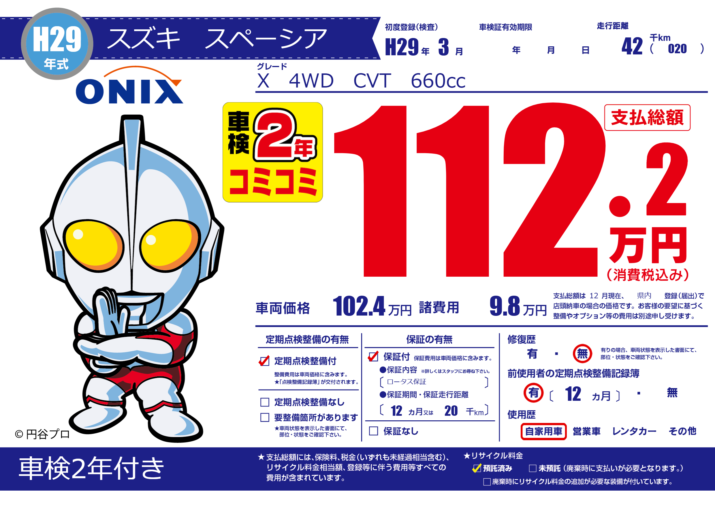 | 走行キロ | 4.2万km | 初年度登録 | H29年3月 |