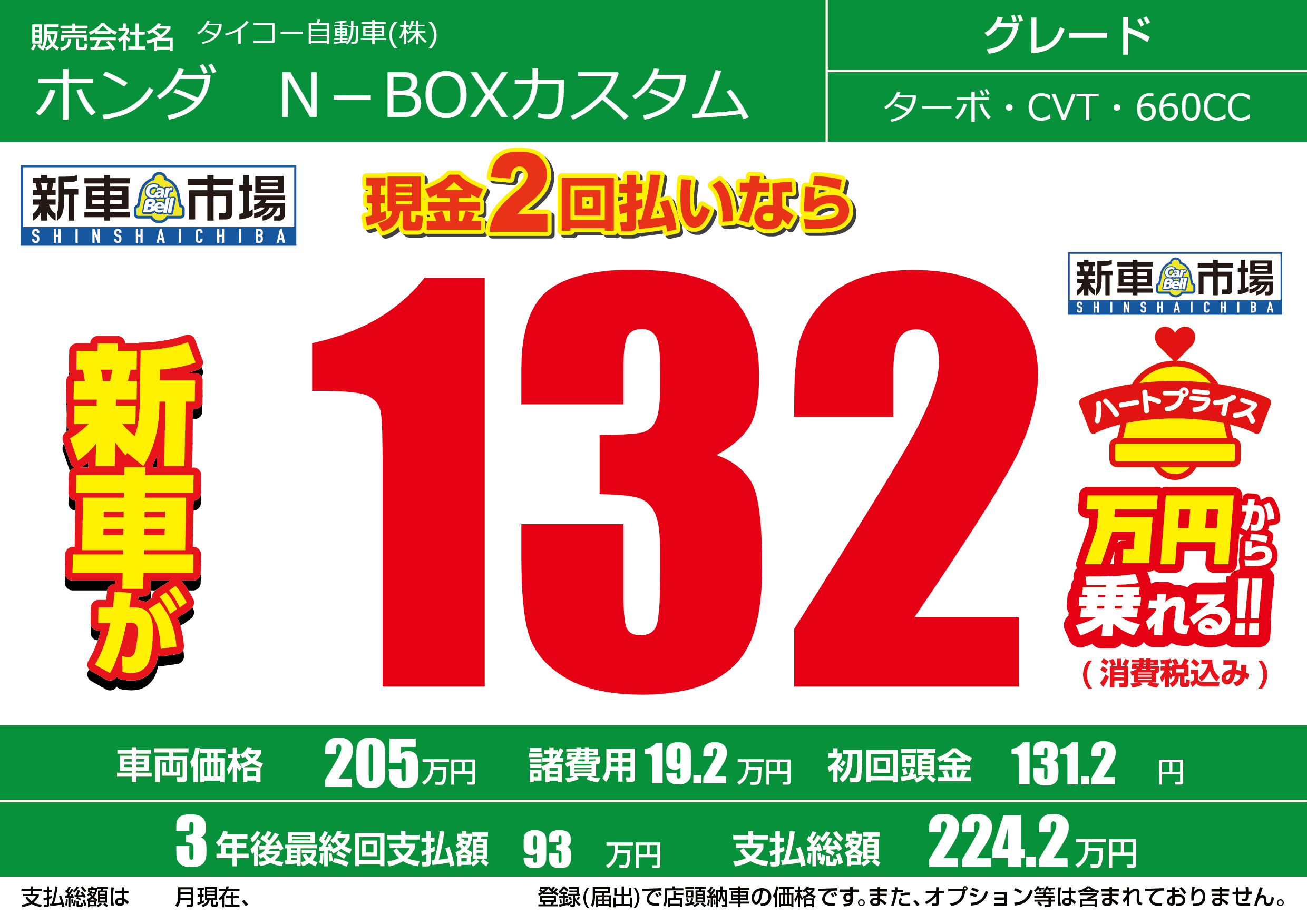 | 車名 | ホンダ N-BOXカスタム | グレード ミッション 排気量 |