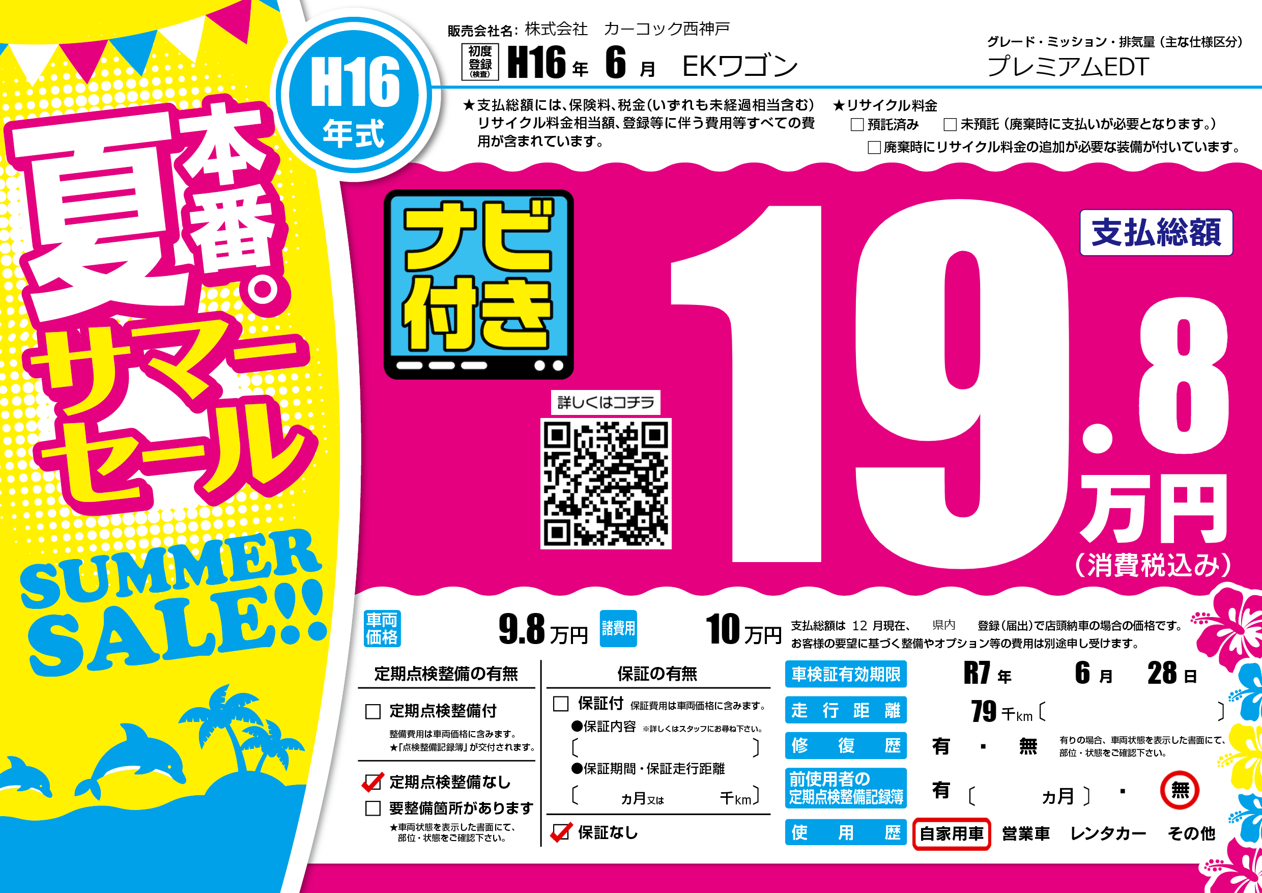 | 走行キロ | 7.9万km | 初年度登録 | H16年6月 |