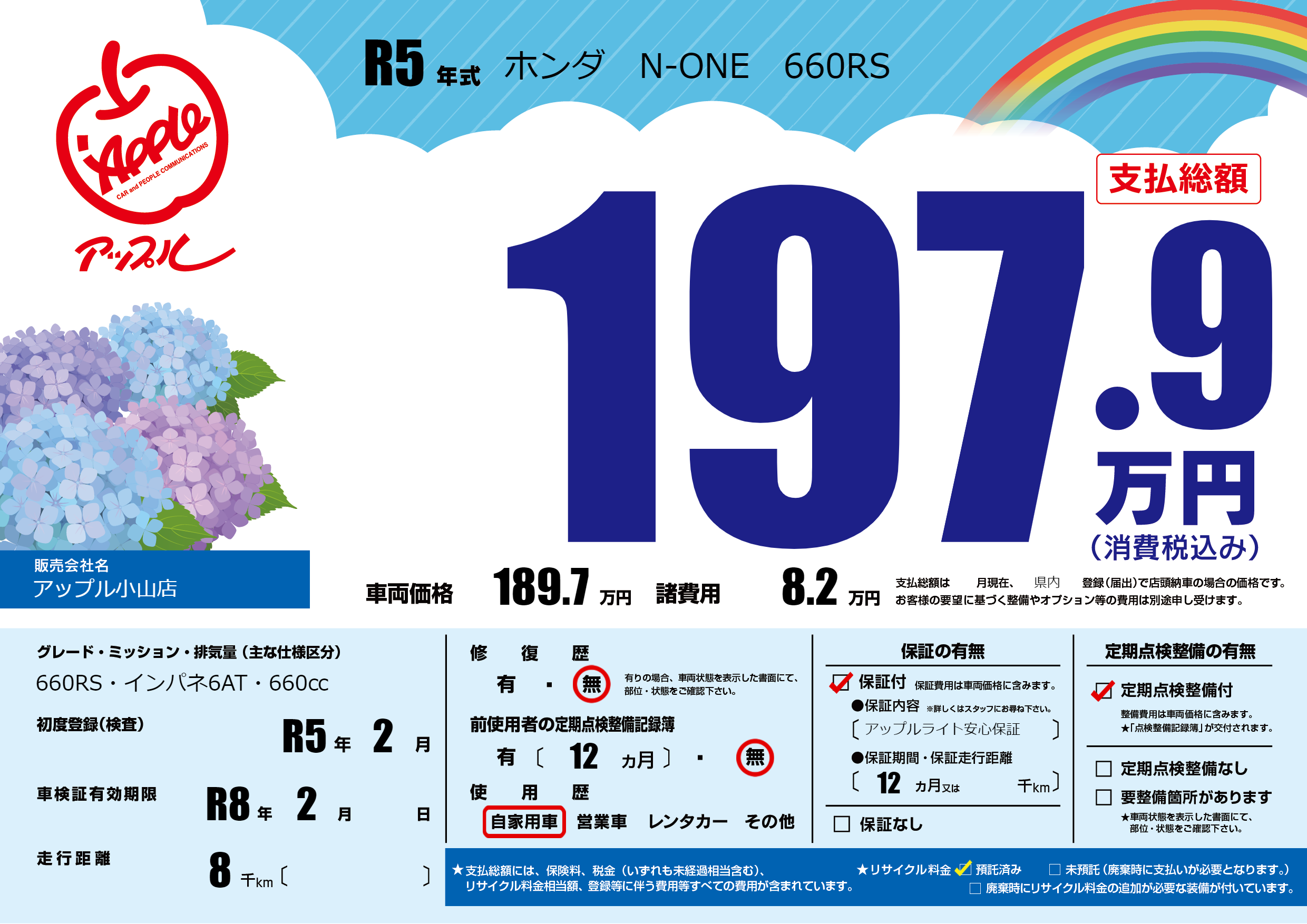 | 走行キロ | 0.8万km | 初年度登録 | R5年2月 |