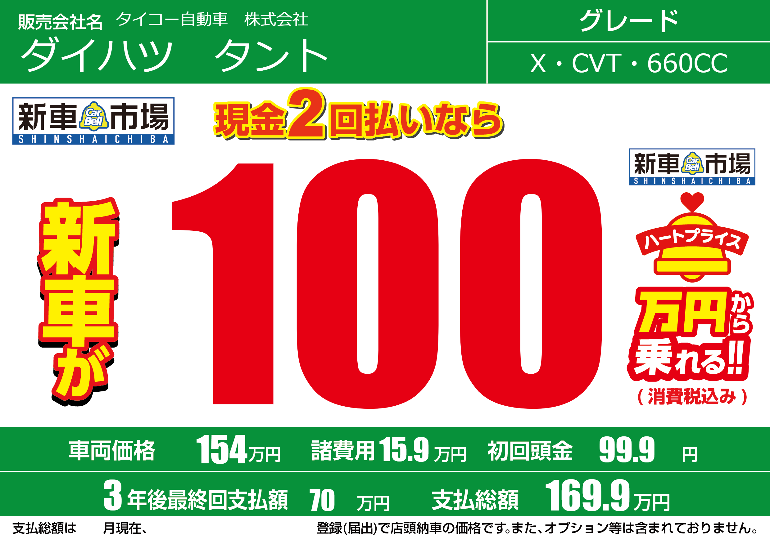 | 車名 | ダイハツ タント | グレード ミッション 排気量 |