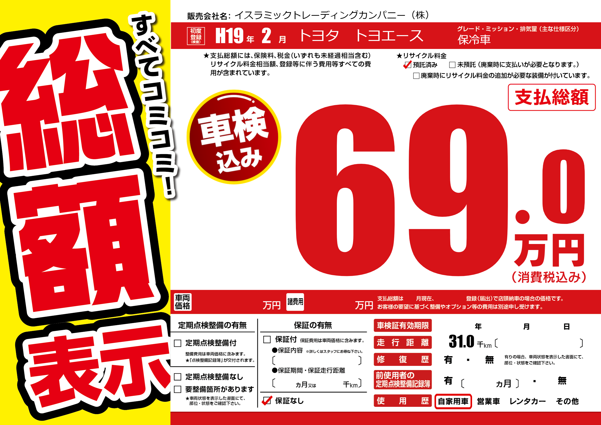 | 車名 | トヨタ トヨエース | グレード ミッション 排気量 |