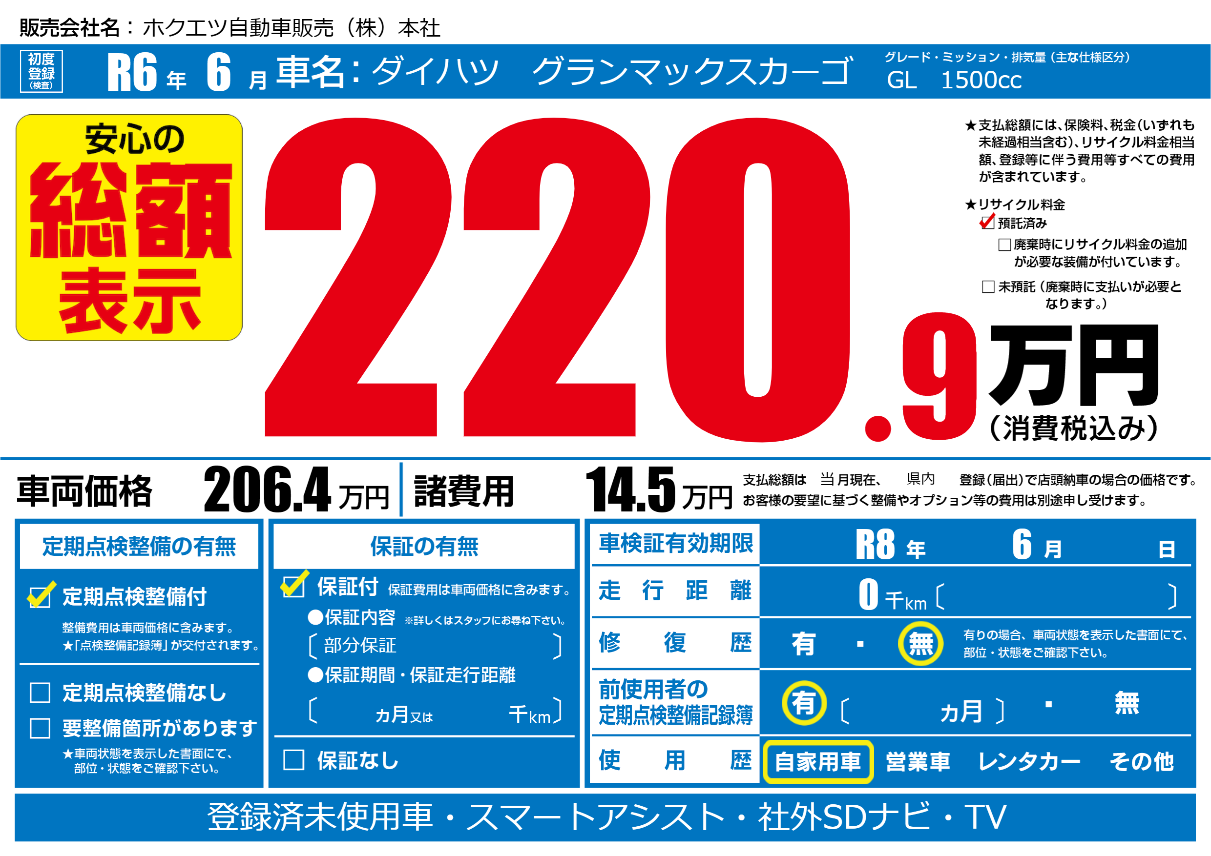 | 走行キロ | - | 初年度登録 | R6年6月 |