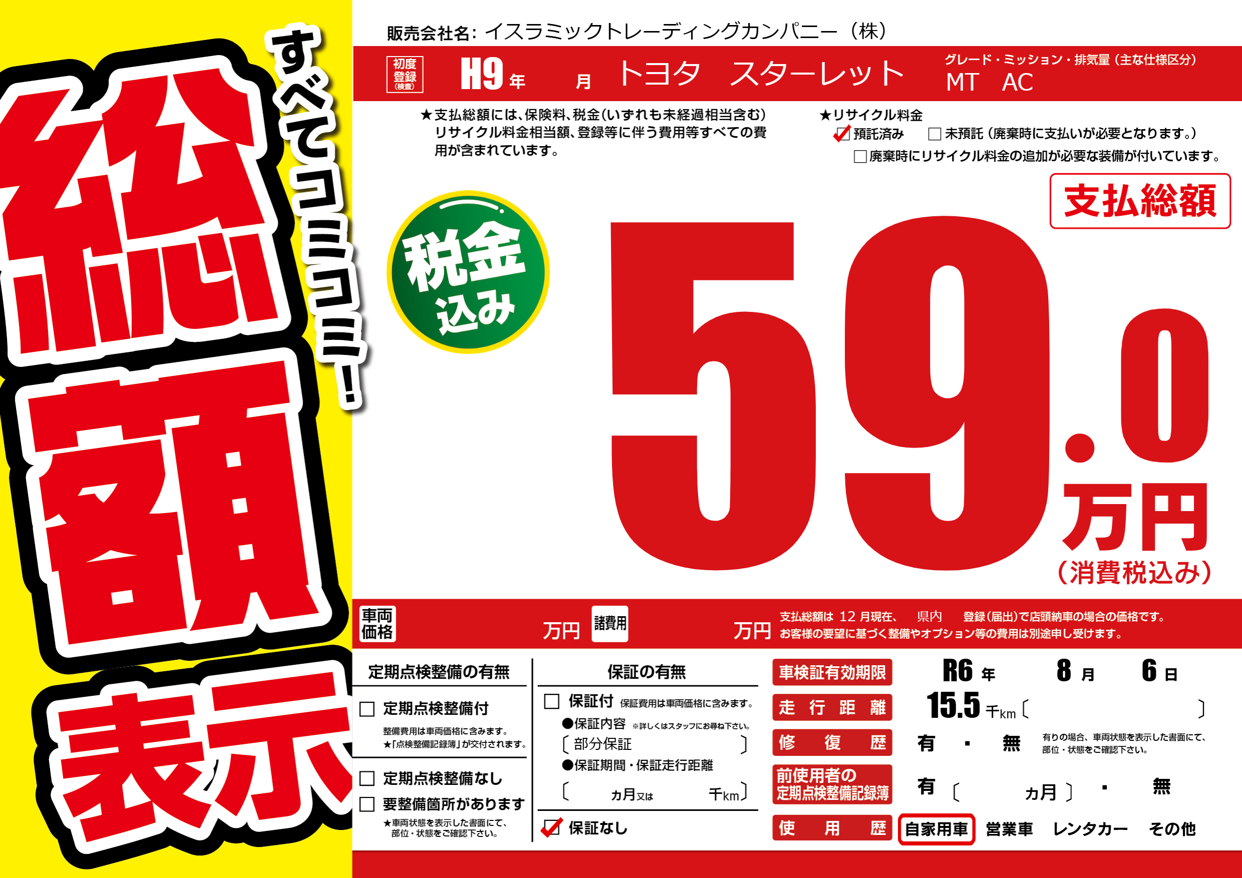 なし | 車検制限 | R6年8月6月 |