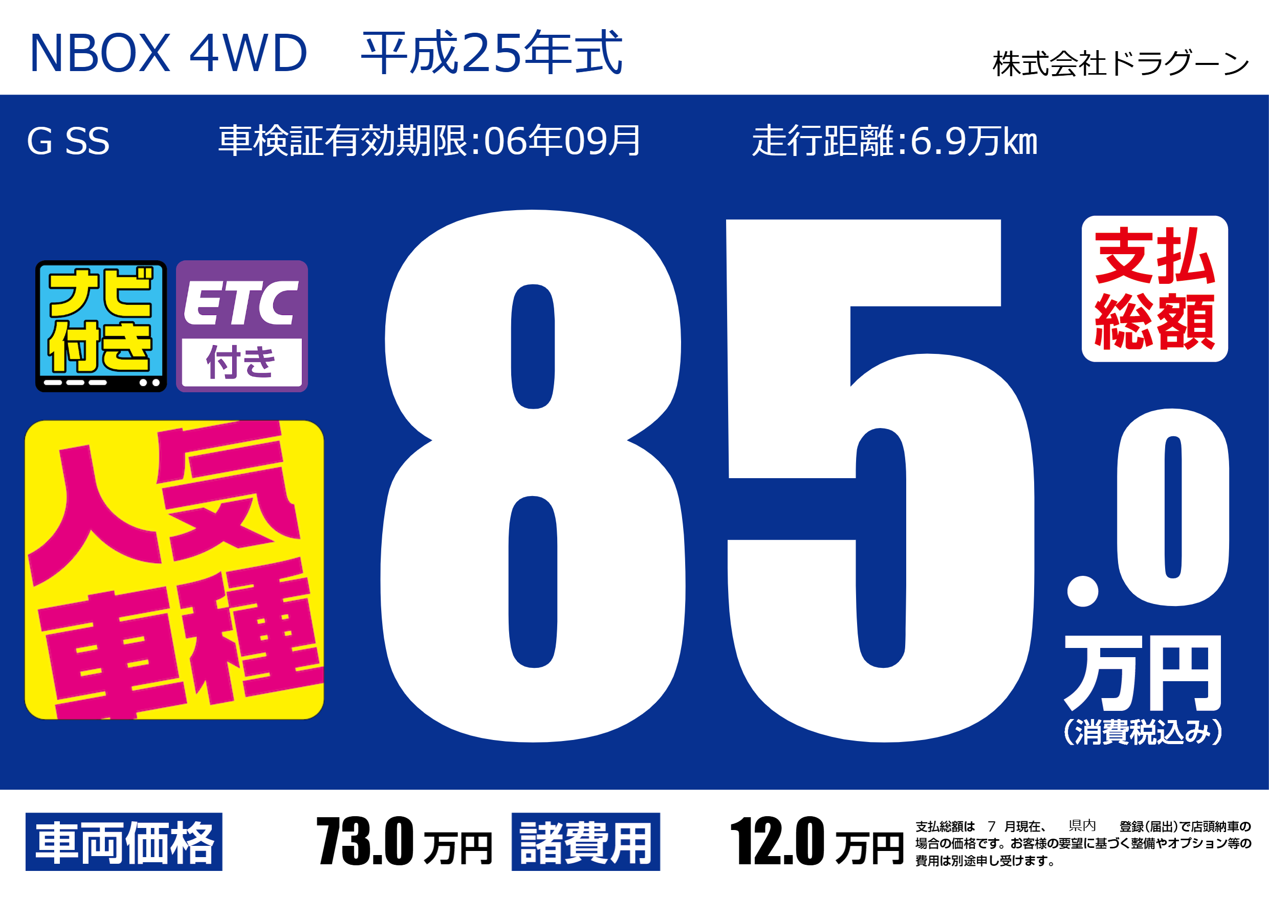| 車名 | NBOX 4WD 平成25年式 | グレード ミッション 排気量 |