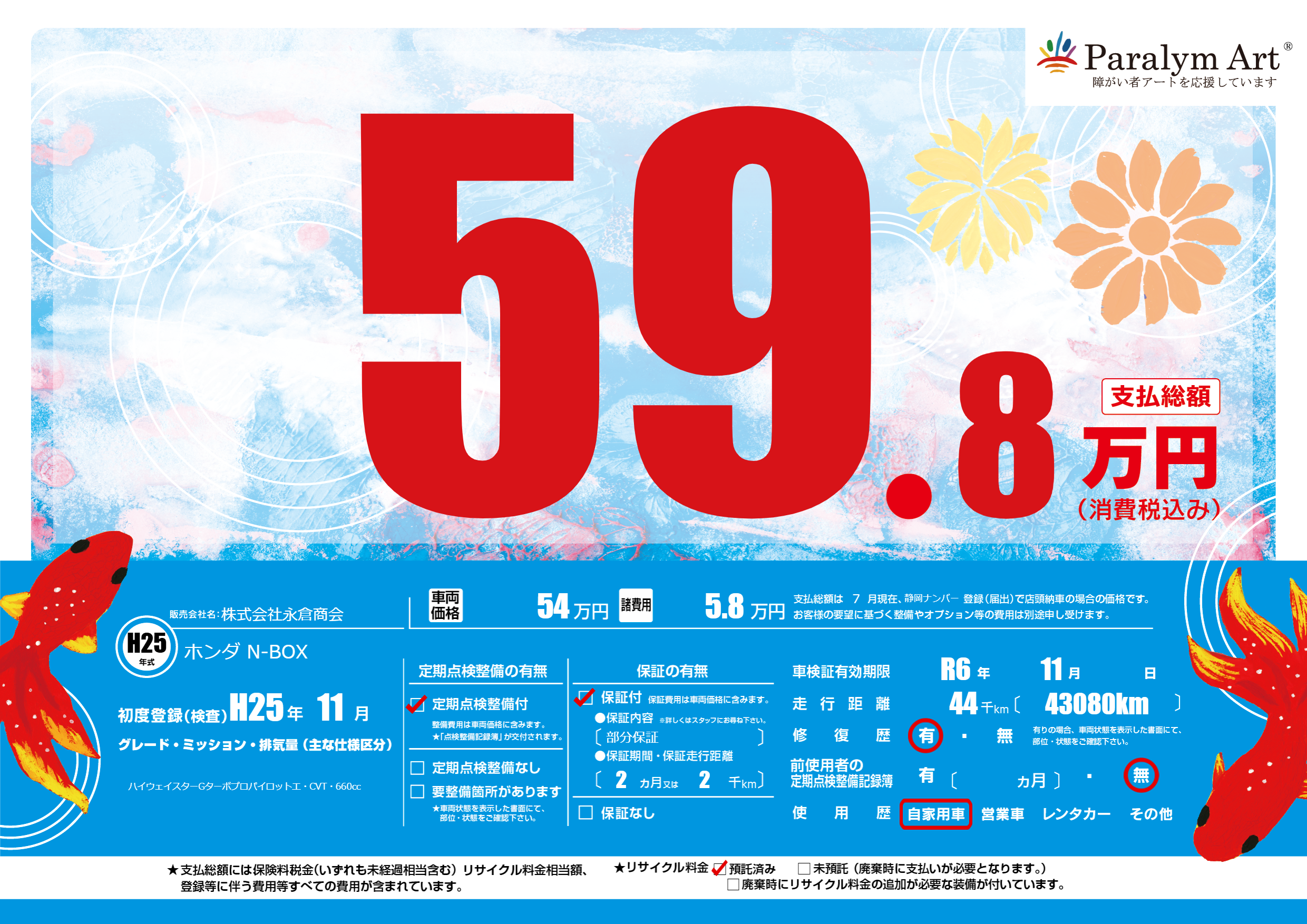 | 車名 | ホンダ N-BOX | グレード ミッション 排気量 |