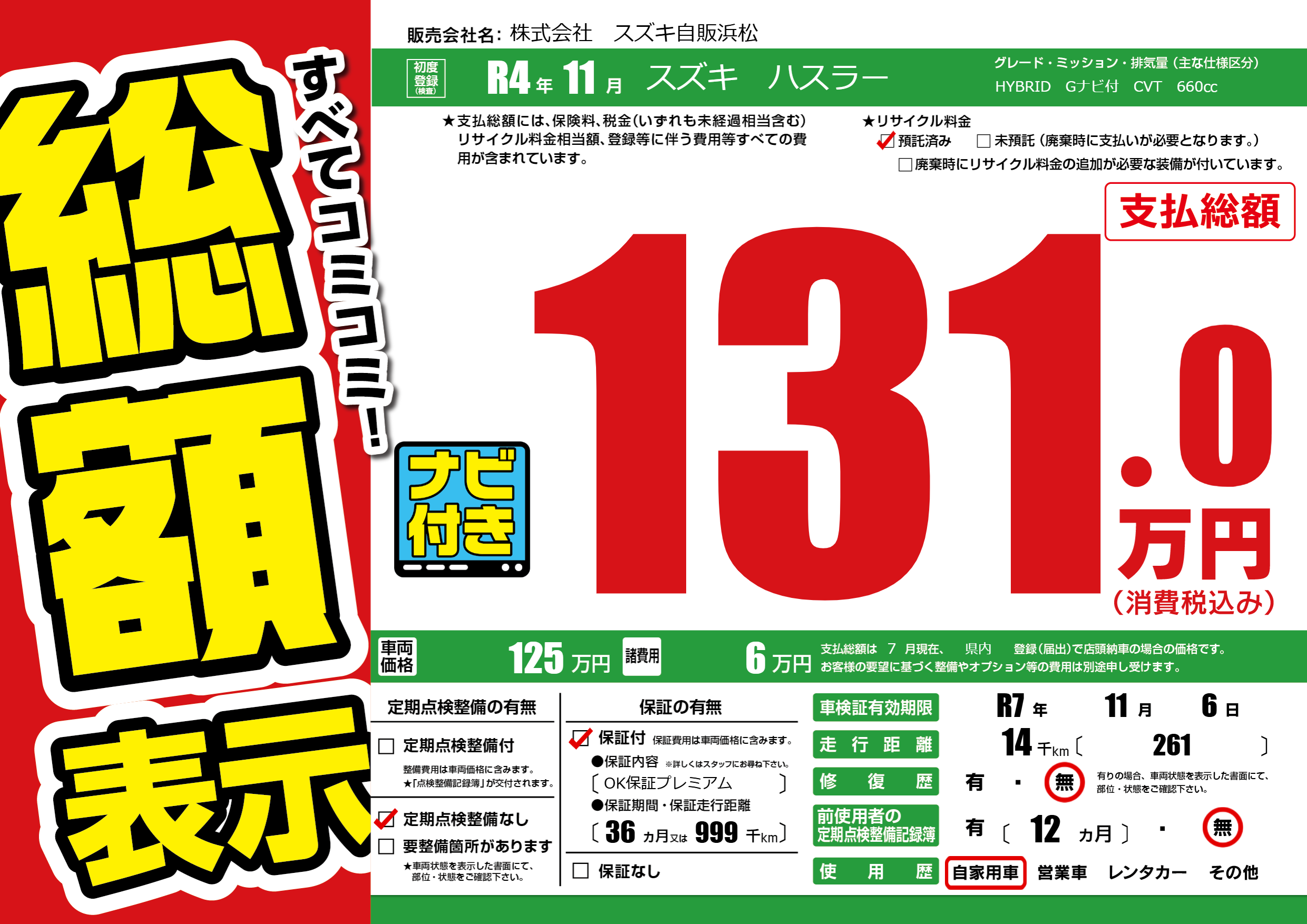 なし | 車検制限 | R7年11月6月 |