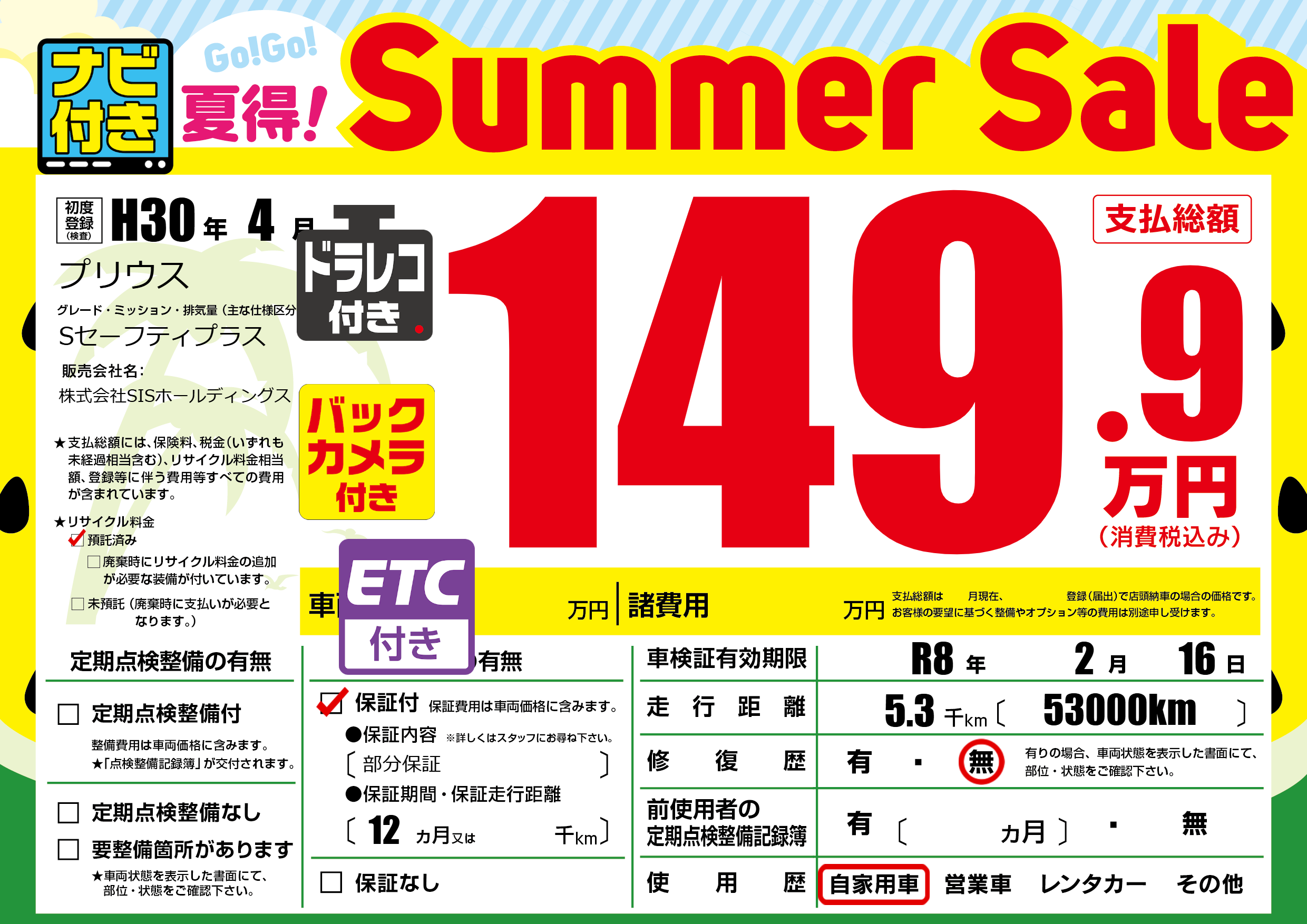 | 走行キロ | 0.5万km | 初年度登録 | H30年4月 |